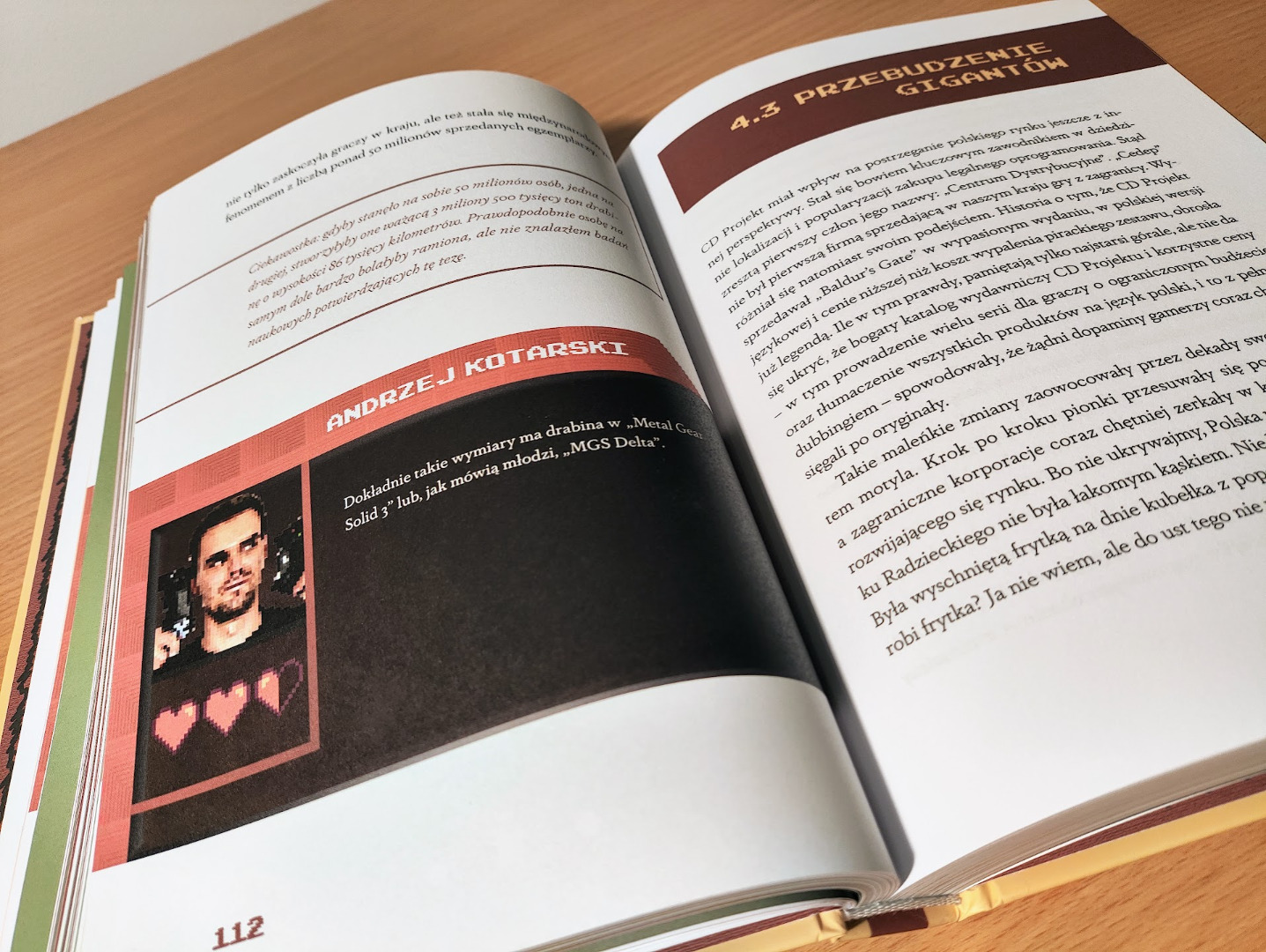 Wewnątrz znajduje się blisko czterysta stron lektury, wypełniającej dosyć grube i sztywne, a do tego porządnie przytwierdzone do oprawy kartki. Ewidentnie nikt nie oszczędzał tutaj na materiałach użytych do druku. Chociaż kolejne karty wypełnia głównie tekst zapisany wygodnym w odbiorze fontem, to znalazło się tutaj również miejsce dla wielu retro elementów graficznych, czy po prostu zdjęć sprzętu oraz ludzi. Wszystko to tworzy naprawdę udaną i spójną całość. To książka, która będzie pięknie prezentować się w biblioteczce gracza.