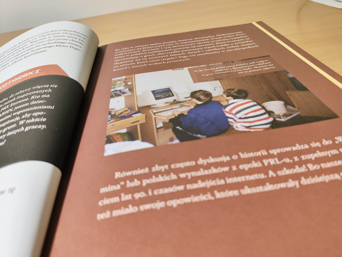 Znajdziecie tutaj wiele wątków, których część, a może większość, odbiła jakiś ślad na życiu graczy dorastających w latach 90. Kolejne rozdziały opisują granie na świetlicy szkolnej, czasy świetności Pegasusa, wozów Drzymały, piractwa i giełd oraz początków internetu, czyli gier sieciowych, które królowały w kafejkach internetowych. Znalazło się też miejsce dla grania mobilnego. Fanów Dark Archona ucieszy zapewne obecność rozdziału poświęconego kawiom domowym w grach wideo. Autor przez cały czas zachowuje odpowiedni balans pomiędzy wspominkami i osobistymi odczuciami a technicznymi aspektami sprzętu oraz gier tamtych czasów. Wszystko to uzupełnione jest niepowtarzalnym stylem i humorem, z jakiego zasłynął w publikacjach na kanale arhn.eu.
