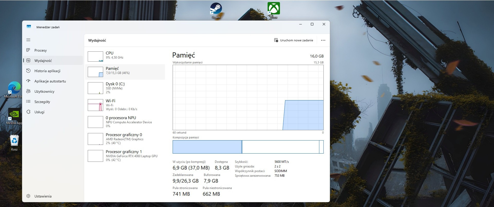 - Pamięć RAM: 16 GB DDR5, 5600 MHz