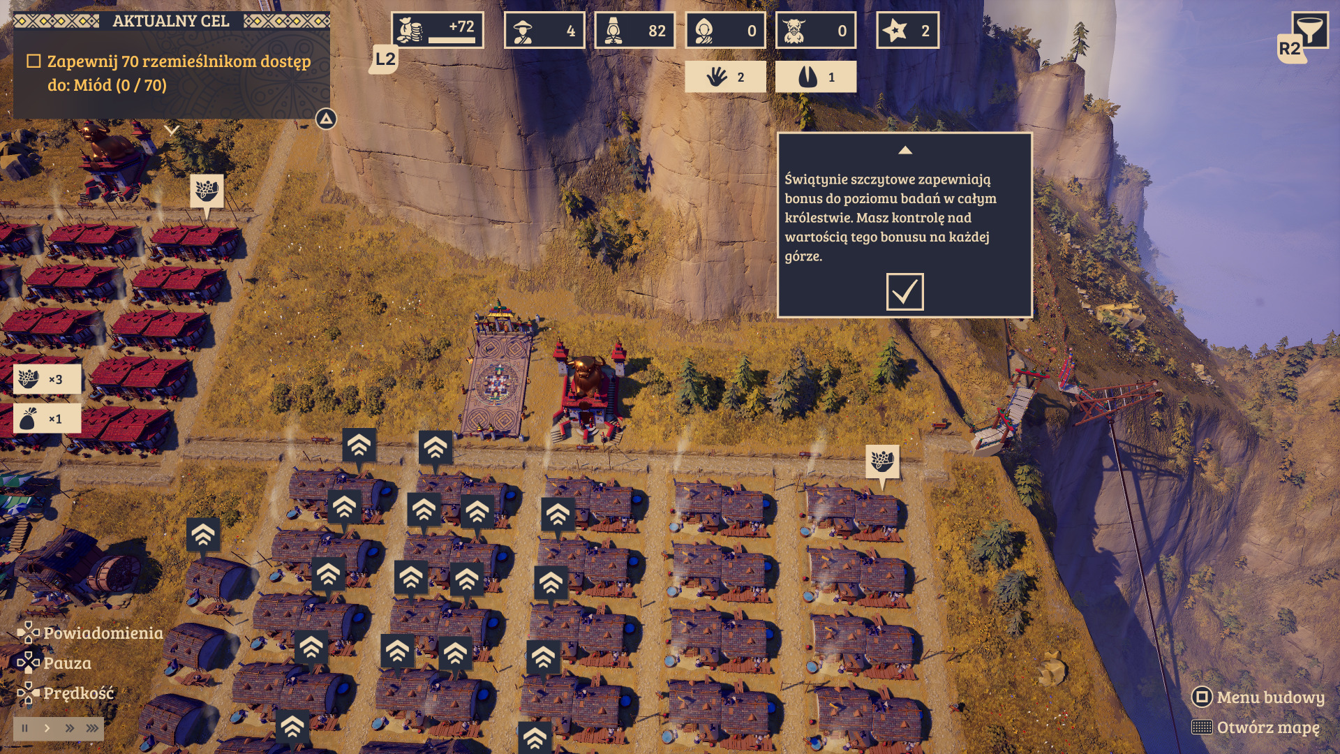 Czujecie to? Wyobraźcie sobie moją frustrację i bezsilność. Zaprojektowałem całe miasto tak, by zostawić miejsce na kopalnie. Nagle w środku zabawy gra postawiła mi zupełnie inny cel, budowę świątyń, które zajmują ogromnie dużo miejsca. Na tym etapie rozgrywki NIE DAŁO SIĘ ICH JUŻ POSTAWIĆ! Do jasnej cholery, kto tak robi? Myślicie, że to jednostkowy przypadek? To jesteście w błędzie. W kampanii tego rodzaju kwiatki i totalny chaos z celami miałem nieprzyjemność widzieć kilkukrotnie i za każdym razem wywracało to całe miasto do góry nogami.