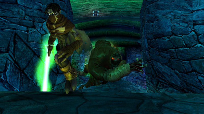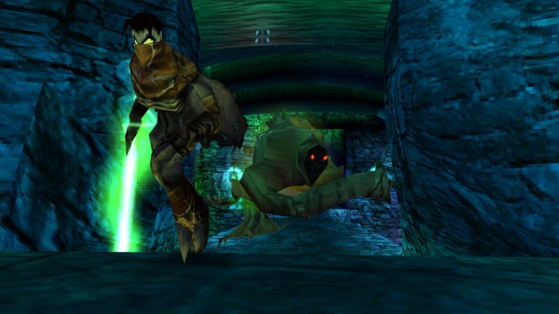 Po drodze nie brakuje zawirowań fabularnych, a świat przedstawiony jest tak bardzo odmienny od tego, co znamy z dzisiejszych gier, że nietrudno jest w ten świat wchłonąć na dobre. Mrok i wszechobecne zniszczenie, nierzadko komentowane poprzez monolog naszego bohatera idealnie dopełnia całości. Mówiąc o fabule, warto abym wspomniał o obecności napisów w pierwszej odsłonie cyklu. Wiem, że może to brzmieć banalnie, szczególnie, że ta seria nie wspiera naszego języka. Soul Reaver jednak oryginalnie napisów nie posiadał wcale, co nawet moderom na PC utrudniało stworzenie fanowskiego tłumaczenia, nie tylko na nasz język.