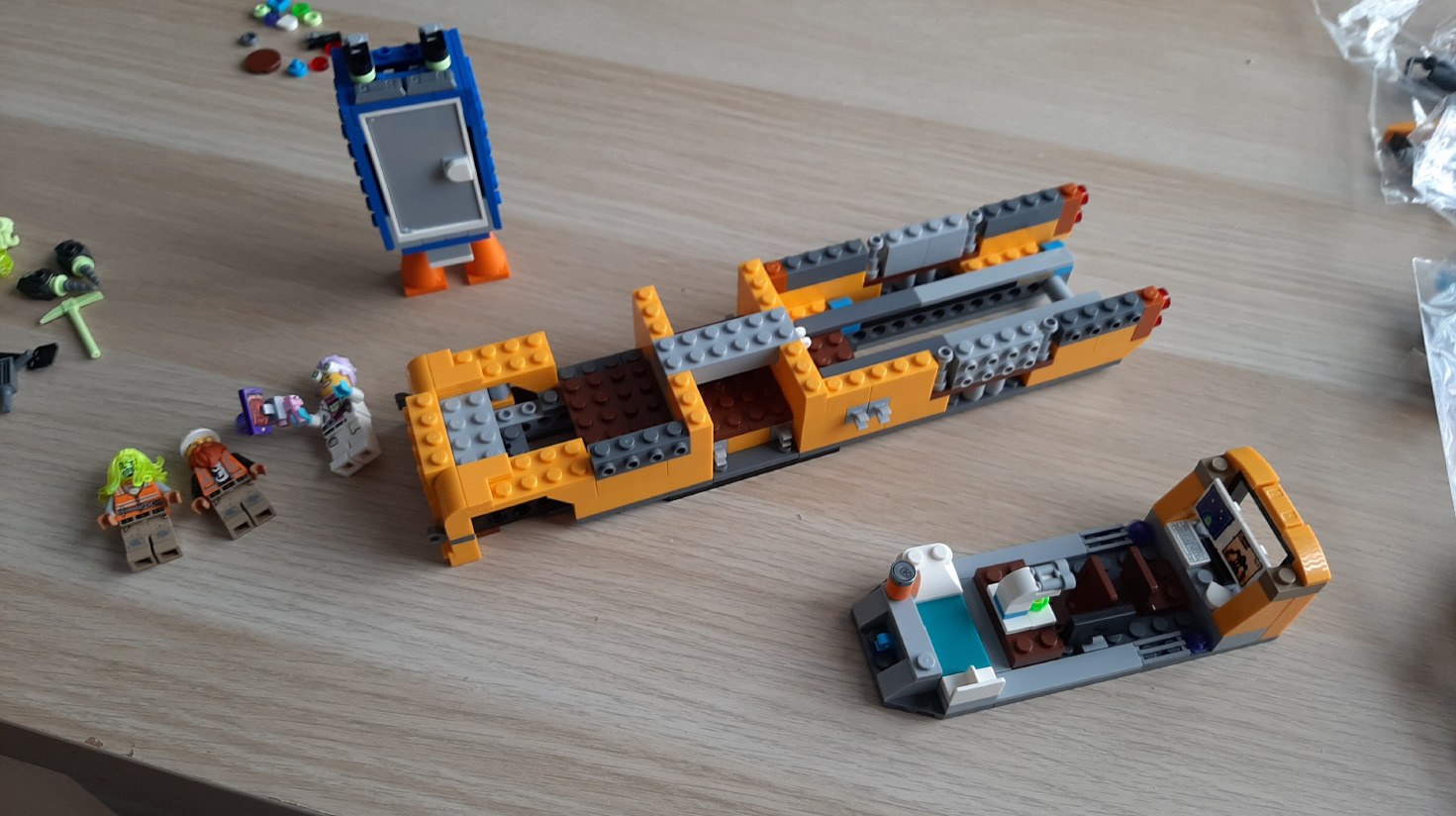 W tej samej paczce znajdziemy też klocki do budowy motorówki przemierzającej inne wymiary i centrum dowodzenia dla naszych poszukiwaczy duchów. Można ją potem schować do autobusu. Pojawia się tutaj kilka fajnych elementów, jak otwierany laptop, puszka na napoje czy peryskop.