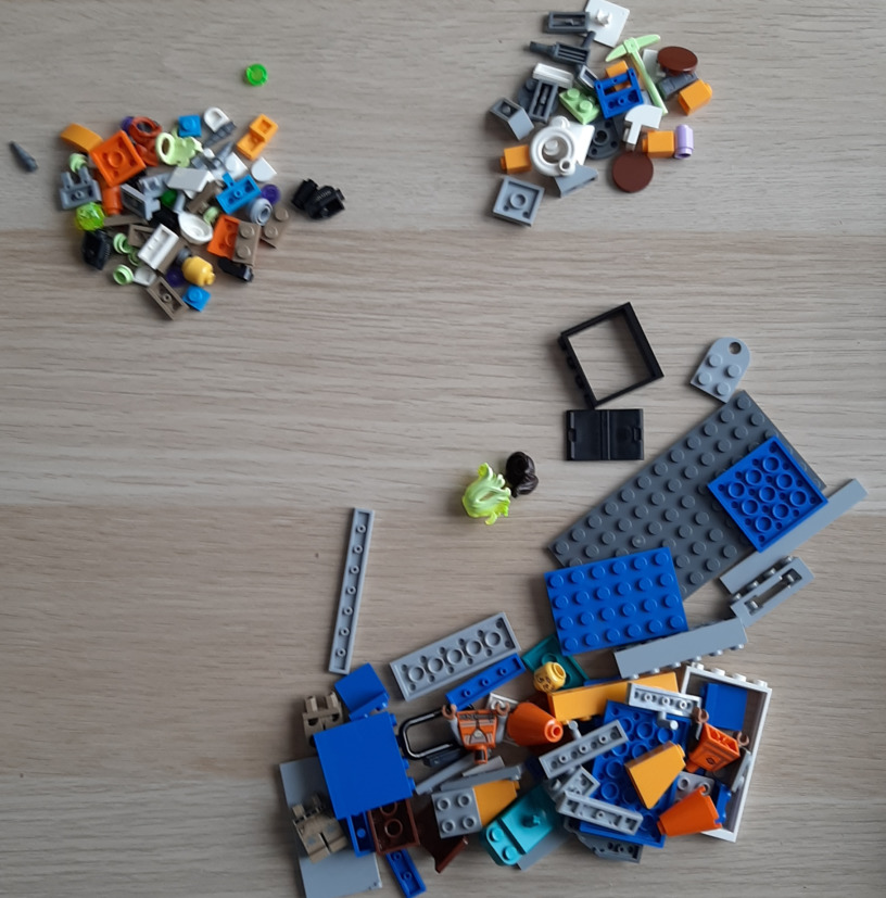 - czasem instrukcja za bardzo trzyma się widoku izometrycznego i nie widać jak złożyć następny klocek (szczególnie przesunięty o 1/2 oczka, lub zasłonięty innym) i przydałby się rzut z góry
