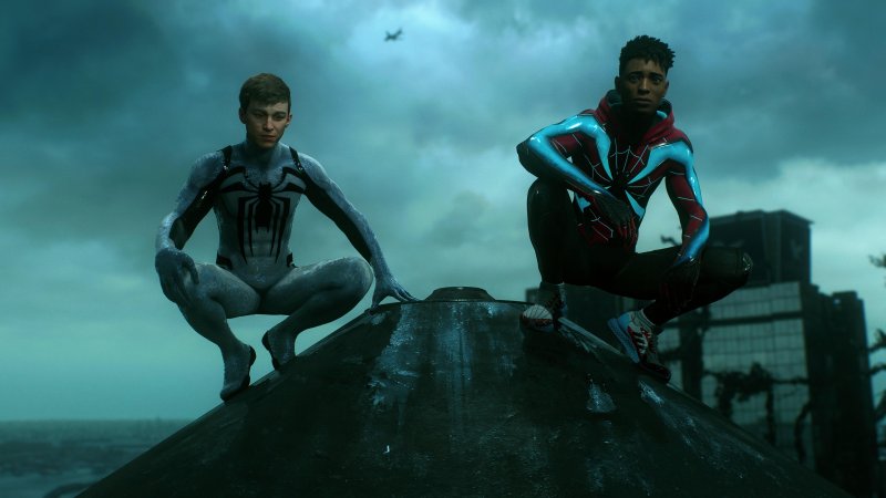 Chociaż zarówno Petera, jak i Milesa mogliśmy już poznać przy okazji swoich własnych gier, to tym razem twórcy stworzyli jedną wspólną historię dla obu superbohaterów. Każda z postaci posiada własne wątki fabularne oraz aktywności poboczne. Morales jest jeszcze nastolatkiem, więc w trakcie gry wielokrotnie przewinie się temat pisania eseju, a także znajdzie się czas na próby zdobycia dziewczyny. Parker z drugiej strony to Spider-Man z doświadczeniem, jego historia skupia się raczej na powolnym wycofaniu z kariery, aby mieć więcej czasu na relację z Mary Jane oraz powracającym z leczenia Harrym Osbornem. To również okres poszukiwania pracy poza nieprzynoszącym zysków ratowaniem świata. Start nowej fundacji, to okazja do rozegrania kilku misji pobocznych związanych z badaniami naukowymi, które przygotowano lepiej niż placówki badawcze znane z pierwszej części.