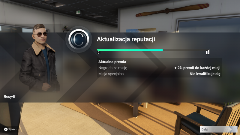 Wraz ze zdobywaniem kolejnych poziomów naszej reputacji oraz samego pilota, będziemy mieć szansę na podjęcie bardziej interesujących i lukratywnych zleceń. Levelowanie jest mechaniką zaczerpniętą wprost z gier typu RPG, ale trzeba przyznać, że działa bardzo motywująco i pozwala poczuć przedsmak tego, co przyjdzie nam robić na wyższych poziomach doświadczenia. Na początku będą to głównie turystyczne loty widokowe, z czasem dostawy małych ładunków, loty spadochronowe a w dalekiej przyszłości nawet akcje ratunkowe czy gaśnicze. Pierwsza z misji danego rodzaju jest w określonym miejscu na globie, a po jej ukończeniu, dany typ misji pojawia się w dostępnych dla nas regionach.