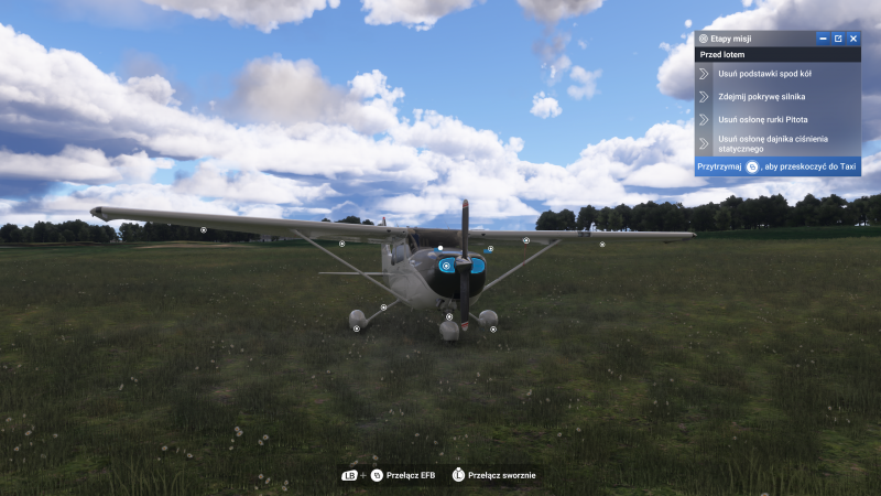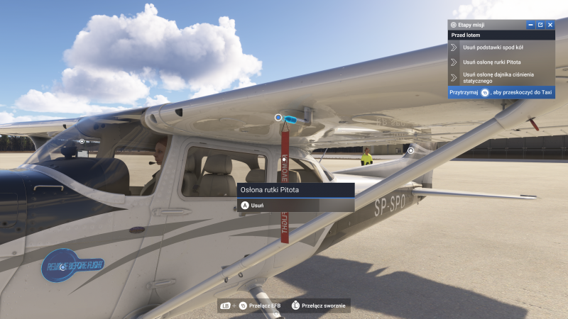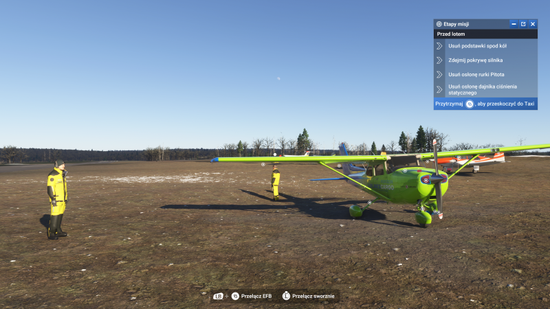 Przy tej okazji warto również wspomnieć, że przed każdym lotem mamy możliwość obejść naszą maszynę pieszo, zdjąć wszelkie osłony i sprawdzić jej sprawność techniczną. Daje to sporo satysfakcji i mimo iż możemy tę aktywność pominąć, to nigdy tego nie robię. To dodatkowa okazja na bliższe poznanie naszej maszyny i kolejny immersyjny zabieg, który się twórcom udał. Nic nie stoi również na przeszkodzie, aby tak po prostu wybrać dowolne lotnisko na świecie, (nawet te mało znane, z polnym pasem startowym) wybrać dowolną z dostępnych maszyn i po prostu polatać.