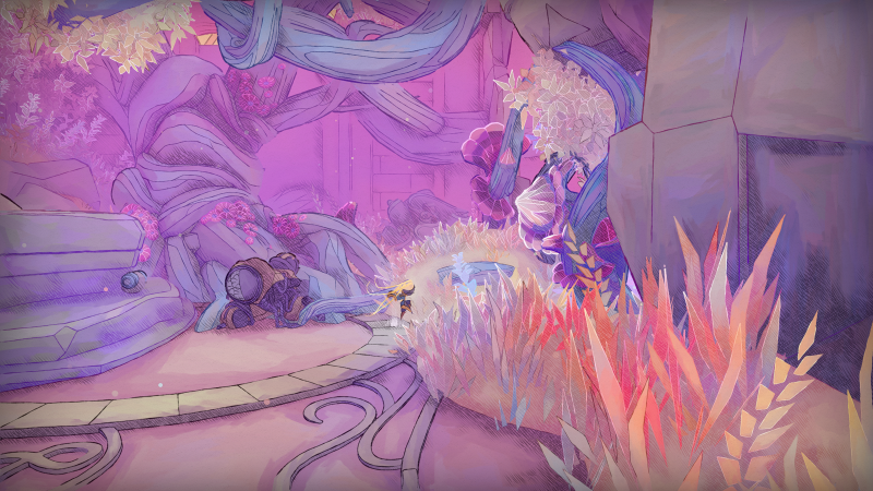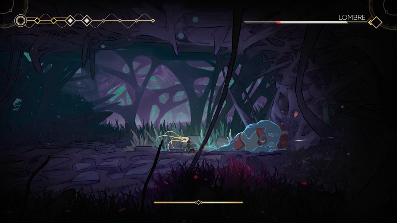 Na podobnych założeniach opiera się model walki. Tutaj również nie możemy przywracać punktów zdrowia, co w przypadku starcia z bardzo wymagającymi bossami jest praktycznie gwarancją naszej śmierci. Mechanicznie jest to mieszanka na wzór Hollow Knighta oraz Nine Sols. Dość prosty model walki połączony jest z mechaniką uników – czymś w rodzaju parowania. Wykonanie uniku pozwala także odzyskać energię, dzięki czemu możemy m.in. przyciągnąć się do przeciwnika czy wykonać podwójny skok. Model walki w znacznym stopniu bazuje na wykonywaniu uników, więc jeśli nasz czas reakcji jest słaby, to będziemy mierzyć się z wieloma porażkami. Na dalszym etapie rozgrywki podstawowi przeciwnicy nie są problemem, a stają się raczej przeszkodą na drodze, którą szybko można pokonać. W kość dadzą natomiast bossowie, przy których spędzimy zdecydowanie zbyt wiele godzin.