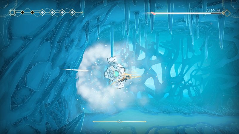Statek, po którym przyjdzie nam się przemieszczać, jest ogromny, a jego osobne segmenty są całkiem różnorodne. Odwiedzimy więc skute lodem miasto, gęste tereny zielone oraz mechanizmy nagrzane do temperatury wrzenia. Świat jest także mocno wypełniony dodatkową zawartością w postaci punktów zdrowia, ukrytych modyfikatorów i przedmiotów fabularnych. Jak na gatunek metroidvanii przystało, pierwsze godziny nie są zbyt atrakcyjne pod względem eksploracji, ale gdy już odblokujemy odpowiednie umiejętności, takie jak możliwość wspinania się po ścianach, mapa znacząco się otwiera, umożliwiając dotarcie do wielu interesujących miejsc.