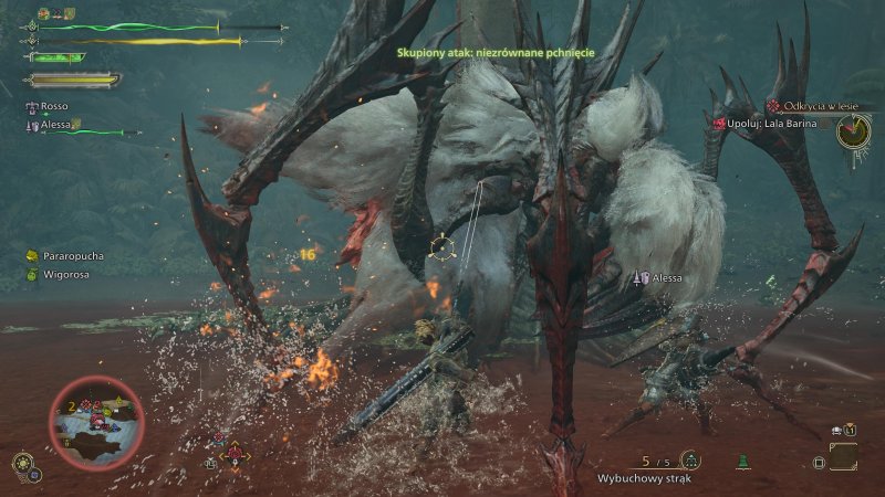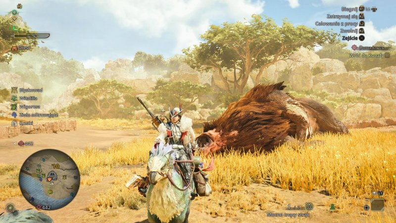 Walki z potworami zostały bardzo dobrze zaprojektowane i są naprawdę emocjonujące, ciekawe i różnorodne. Dzięki temu nie odczuwamy znużenia, a nawet z chęcią powtarzamy polowania na znane już besteie, w celu zdobycia cennych materiałów, dzięki którym możemy ulepszać broń i pancerze. Warto zaznaczyć, że Monster Hunter Wilds daje nam do dyspozycji naprawdę ogromny arsenał uzbrojenia, w którym znajdziemy zarówno miecze, łuki, halabardy, jak i ogromne działa. Każdą bronią walczy się zupełnie inaczej, dzięki czemu możemy stale eksperymentować z uzbrojeniem, co jeszcze bardziej urozmaica monumentalne batalie.