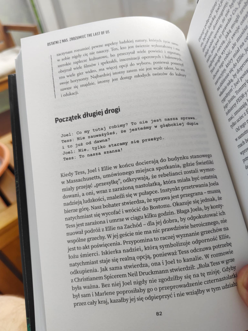 Już na wstępie autor zaznacza, że tekst skierowany jest do osób, które ukończyły obie części gry. Nie kryje żadnych informacji na temat fabuły, a wręcz przeciwnie. Każdy rozdział przygód Joela i Ellie został rozłożony na czynniki pierwsze i przeanalizowany z prawdziwie eksperckim okiem.