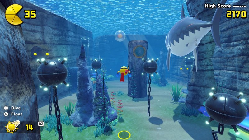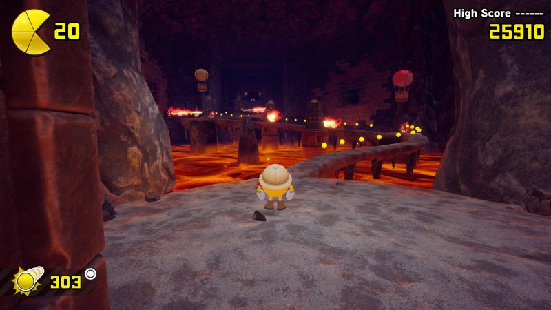 Jedną z wprowadzonych w remake’u zmian są pociski, którymi bohater może rzucać w przeciwników. Nie ma tu żadnego precyzyjnego celowania, a zasięg pocisków jest tak niewielki, że są praktycznie bezużyteczne. Nie ma też podwójnego skoku, a zamiast tego PAC-MAN wybija się od ziemi. Wiele skoków wymierzamy więc na milimetry, licząc, że umiejętność krótkiego zawieszenia w powietrzu pozwoli mu doskoczyć do platformy. Jeśli chodzi natomiast o kamerę, ta potrafi się momentami całkowicie gubić i nie widzimy nawet sylwetki naszego bohatera. W takiej sytuacji należy samemu odwrócić kamerę, co może kosztować kilka dodatkowych sekund.