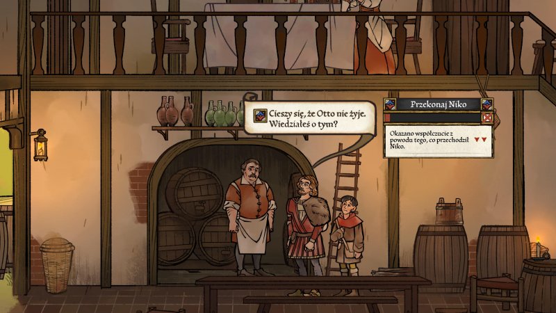 Jestem również szczerze oczarowany ścieżką dźwiękową autorstwa Alkemie. Zespół, przy użyciu instrumentów pochodzących z Europy XIV-XVI wieku stworzył muzykę, która świetnie pasuje do świata gry i wzmacnia klimat, jaki wylewa się z pozycji. Na szczególne wyróżnienie zasługują m.in. oba utwory wykonywane przez jednego z obecnych w grze benedyktynów, czyli Rudeger's Comfort i Rudeger's Rehersal. Utwory takie jak te stworzone do Pentiment słyszy się w grach szczególnie rzadko, więc zdecydowanie zachęcam do przesłuchania całego albumu.