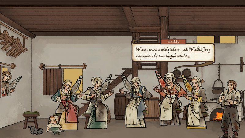 Pentiment nie mogłoby się udać, gdyby nie dopracowany scenariusz. Przedstawiona historia jest angażująca, a system dialogów pozwala obrać taką ścieżkę, jaką faktycznie uważamy za słuszną według własnych przekonań. Śledztwo sprawnie rzuca podejrzenia na różne osoby, więc nie ma tutaj sytuacji, w której momentalnie można trafnie wskazać mordercę. Twórcom udało się stworzyć bohaterów wielowymiarowych, trudzących się swoimi własnymi problemami. Historia wydaje się autentyczna, a przedstawione postacie są zwyczajnie realne. Podczas przechodzenia tej wcale nie krótkiej przygody, niejednokrotnie odnajduje się poszlaki sugerujące rozwiązanie, więc czujności nigdy zbyt wiele…
