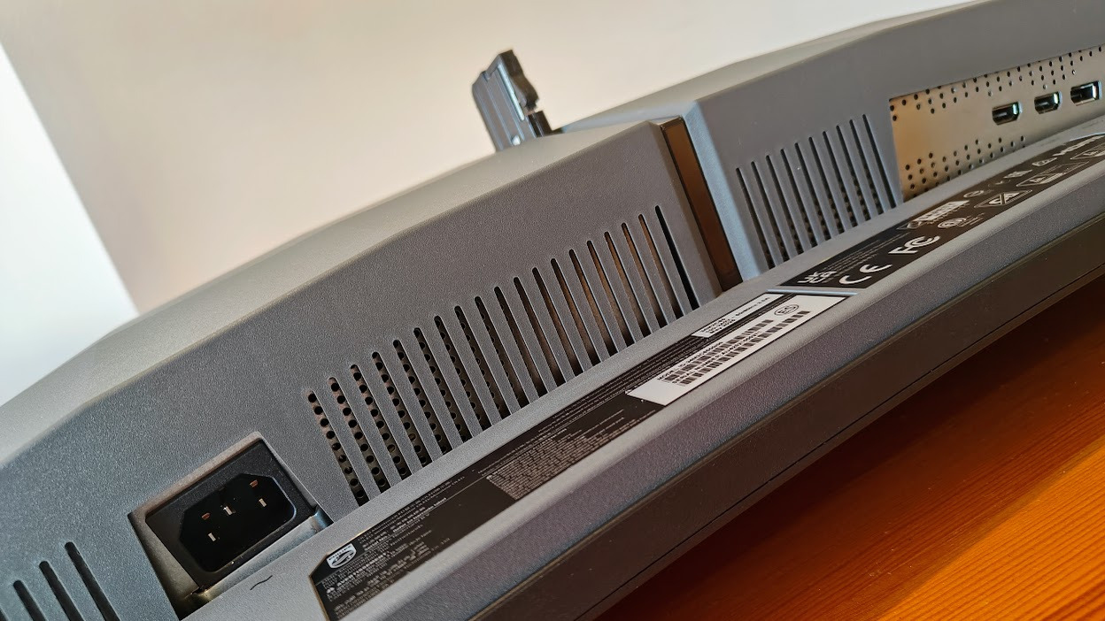 Po drugie, znajdziemy tu dwa złącza HDMI 2.0. Właśnie w tym miejscu odczuwalne jest największe ograniczenie konstrukcji — ze względu na brak standardu HDMI 2.1, maksymalne odświeżanie ograniczone jest do 100 Hz. To szczególnie istotne dla użytkowników konsol obecnej generacji (Xbox Series X|S/PlayStation 5), którzy nie będą mogli pograć w 120 Hz, na jakie pozwalają niektóre gry.