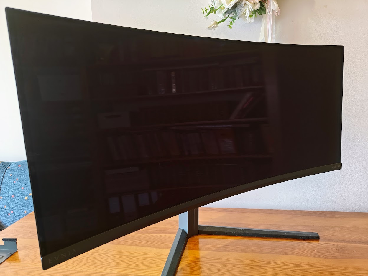 Philips Evnia 34M2C6500 to monitor ultraszeroki. Na 34 calach matowej matrycy, pozwala na wyświetlenie obrazu w rozdzielczości 3440 x 1440 pikseli (format obrazu 21:9) przy maksymalnie 175 Hz odświeżania. Imponujący jest czas reakcji, który wynosi zaledwie 0,03 ms (GTG). Jasność ekranu to 250 (SDR) i 450 (HDR) cd/m². W skrócie, nie musicie obawiać się, że coś będzie słabo widoczne w mocno nasłonecznionym pokoju. Właśnie w takim sprzęt testowałem i nawet na 80% mocy podświetlenia było za jasno.