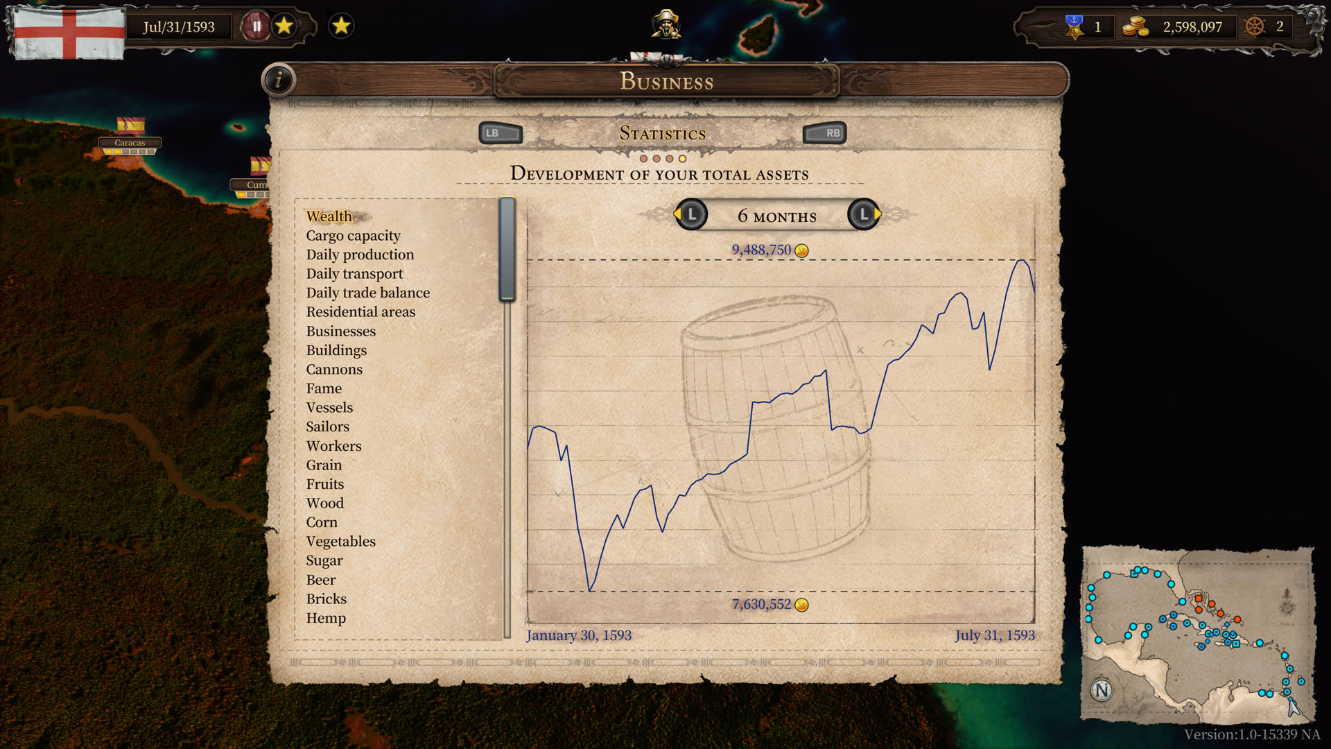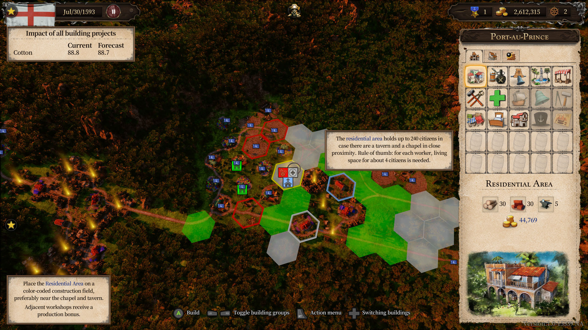 Nasze możliwości nie kończą się jednak na samym handlu. Na początku obejmujemy kontrolę nad naszym miastem macierzystym, o którego mieszkańców musimy dbać, budując tawerny, kościoły czy szpitale i naturalnie zapełniając sklepy sprowadzonymi bądź wyprodukowanymi dobrami. Musimy jednak pamiętać, by kolejnych domostw nie stawiać blisko zakładów pracy, bo mieszkańcom naszego miasta to się nie spodoba, a jeśli wybitnie ich zdenerwujemy, mogą nawet odejść, by poszukać lepszego życia w miastach innych gubernatorów, zostawiając zakłady pracy puste, a nas, z długami na koncie.