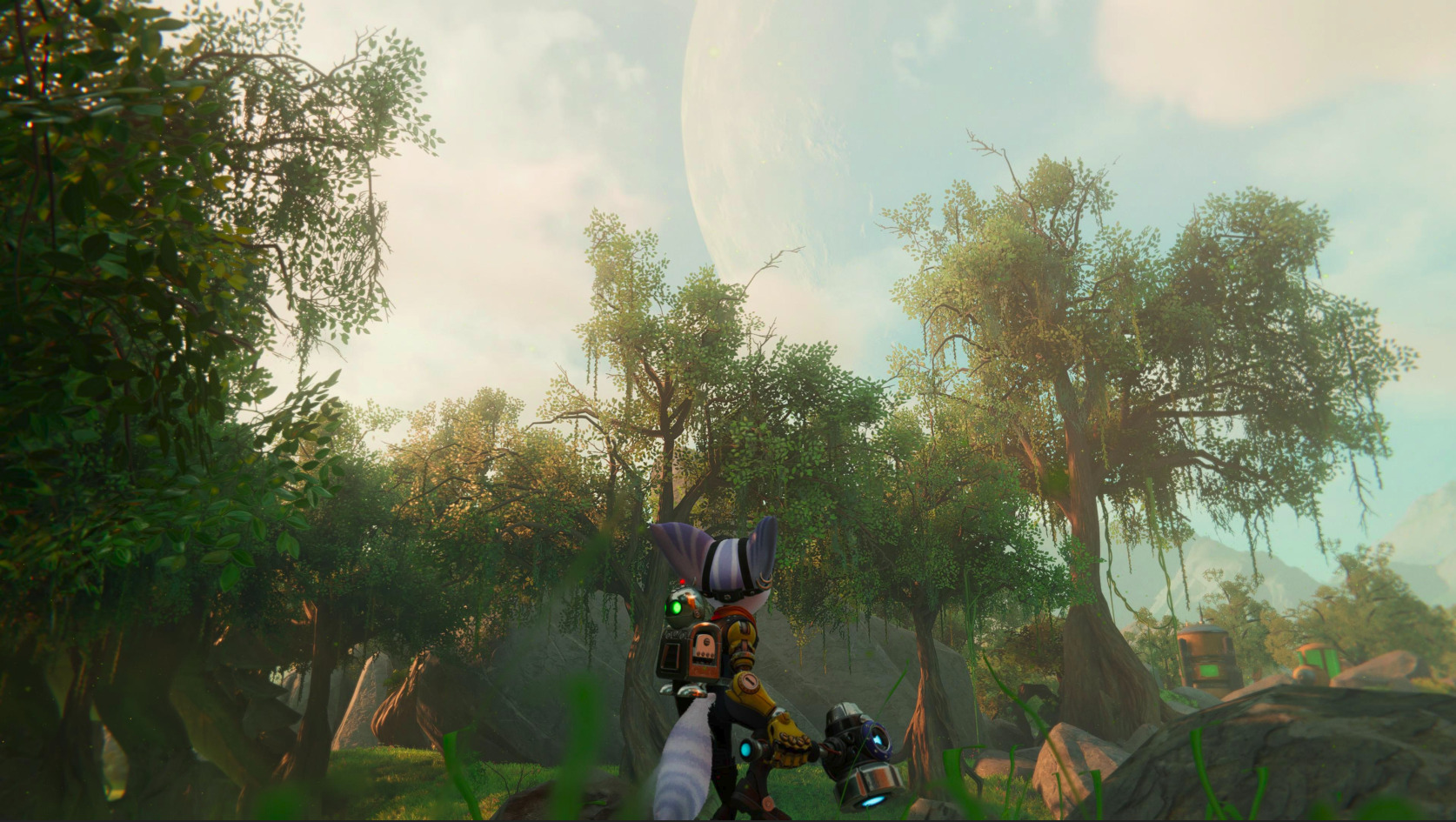 Ba, gra prawdopodobnie jest lepsza od filmu kinowego z Ratchetem, bowiem ten przez filtr zmiękczający był co prawda gładziutki, ale gra potrafi wygenerować obraz o rozdzielczości 4x większej niż obraz z 2016 roku (w wersji BluRay), więc przy tej samej liczbie detali obraz jest ostry jak żyleta. Jedyna różnica jest taka, że w filmie w trakcie renderowania można było sobie pozwolić na lepsze wypalenie cieni i światła - ale i tutaj gra nie odstaje jakoś specjalnie. Owszem, jest parę miejsc, gdzie widać podział na cienie dużych i małych obiektów i te drugie potrafią znikać za pewną niewidzialną linią, ale w grze jest mało miejsc, gdzie da się to zauważyć. Światło, to już po prostu najwyższa półka. Promienie, flary, rozbłyski, rozmycia ambientowe i wiele wiele innych, tak wpasowanych w grę, że dopiero gdy wracamy do innych tytułów widzimy, jaki postęp graficzny nam zaserwowano.