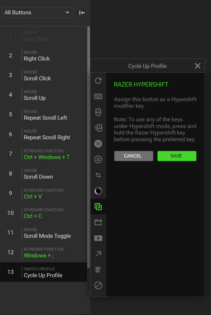 Drugi "bajer" to natomiast funkcja HyperShift. Pod tą dziwaczną nazwą kryje się możliwość przypisania wielu funkcji do jednego klawisza. Jak to działa? Bardzo prosto, wystarczy ustawić na urządzeniu klawisz jako Hypershift i po jego przytrzymaniu każdy inny klawisz zyska osobny zestaw funkcji. Dzięki temu możemy de facto zduplikować ilość klawiszy na myszce.
