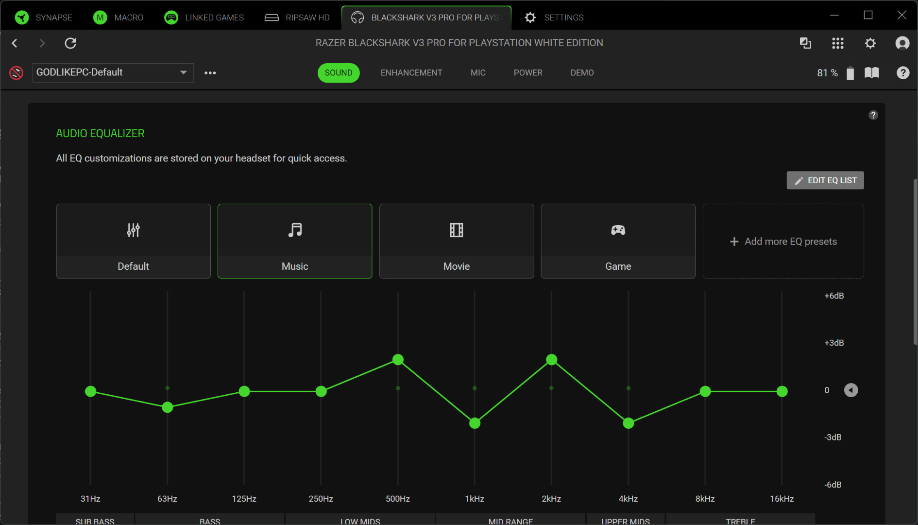 Na szczęście można to naprawić. Po pierwsze NATYCHMIAST po podłączeniu słuchawek wejdźcie w equalizer w programie Synapse i zmieńcie ustawienia. Domyślne to jest po prostu zbrodnia na waszych uszach. Nigdy nie widziałem bardziej rozregulowanych ustawień domyślnych i dojście do ładu zajęło mi sporo czasu. Proponuję takie ustawienie equalizera.