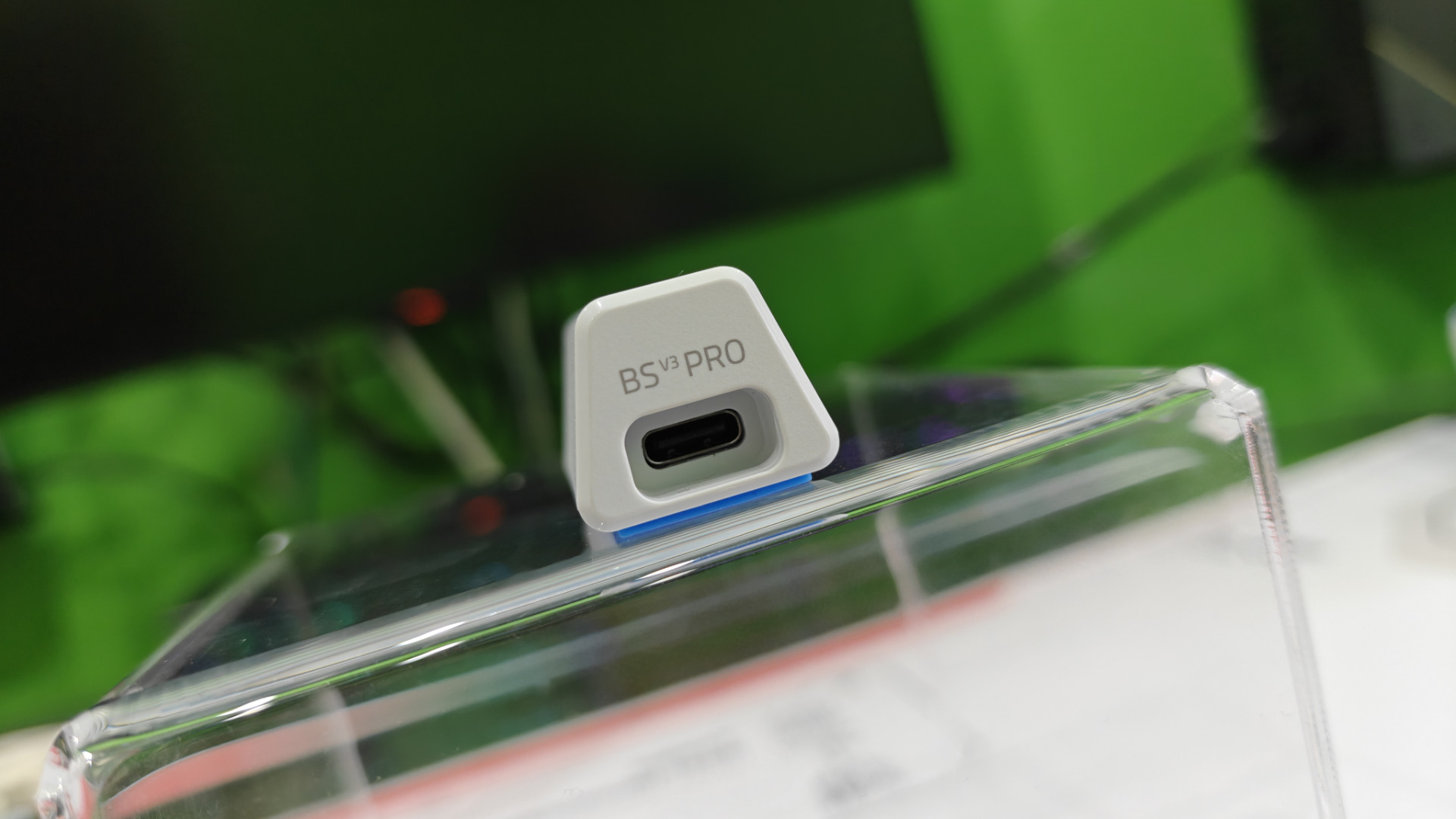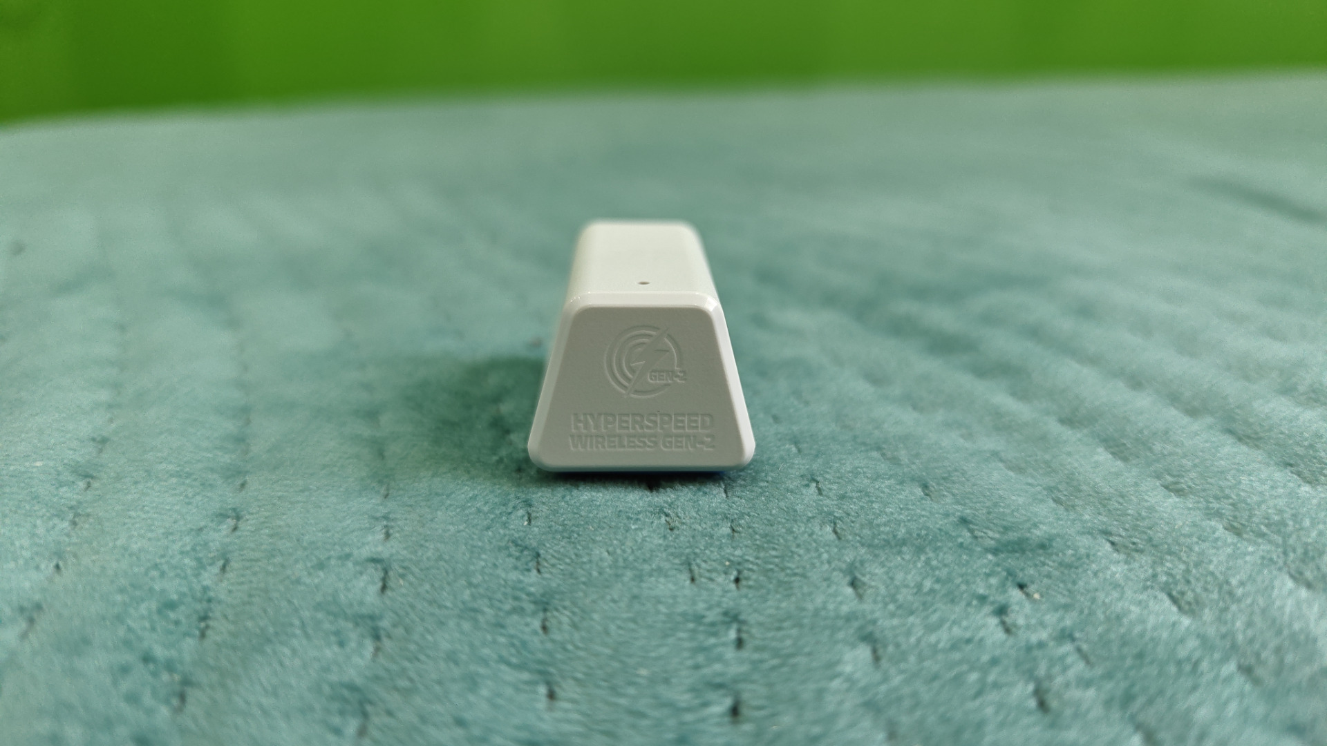 Odbiornik, który mam w zestawie to najwyższy model Razer HyperSpeed drugiej generacji, który warantuje ekstremalnie niskie opóźnienia na poziomie rozgrywek esport dochodzące do zaledwie 10 milisekund (!). Tak jak i pozostałe elementy zestawu — jest świetnie wykonany i wizualnie pasuje do reszty akcesoriów.