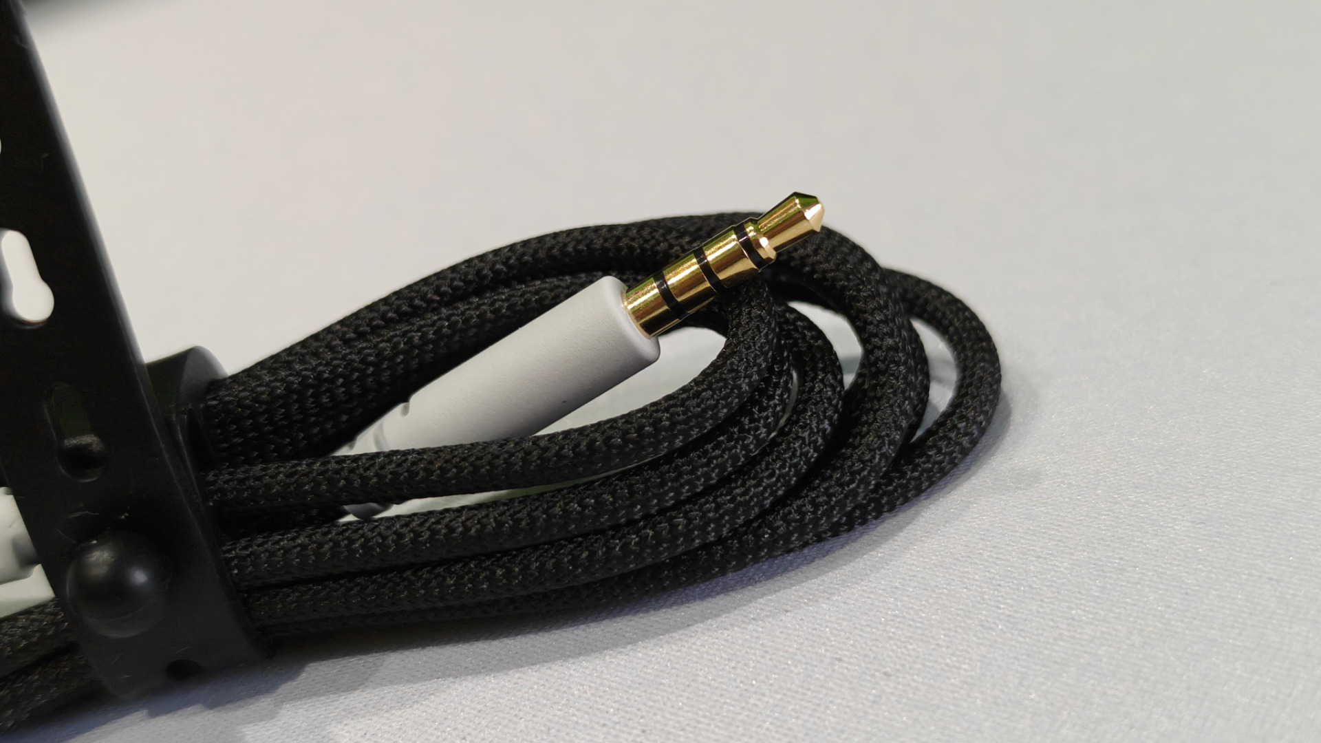 Drugi natomiast to specjalny kabel pozwalający nam na połączenie przewodowe, ale z użyciem tradycyjnego Jacka 3,5 mm. Jak widać po ilości pinów i budowie TRRS, nawet po kablu jack nadal skorzystamy z mikrofonu, co w przypadku słuchawek bezprzewodowych nie zawsze jest oczywiste.