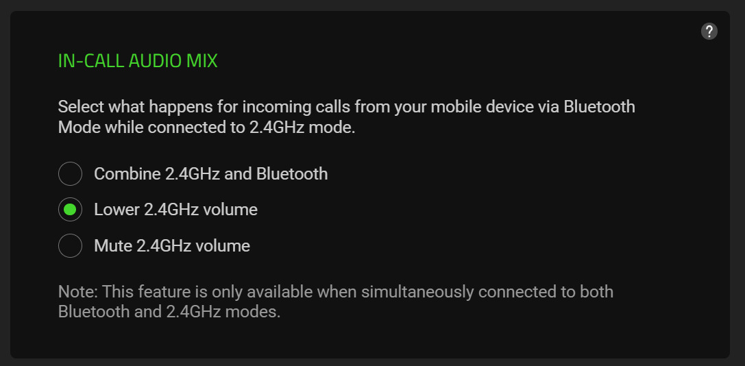 Co więcej, medal należy się za opcję konfiguracji zachowania słuchawek podczas połączenia jednocześnie Bluetooth oraz 2,4 GHz. Możemy wybrać, by na chwilę łączność 2,4 GHz całkowicie wyciszyć, bądź ściszyć. Gdy ktoś do mnie dzwonił, bądź otrzymałem powiadomienie słuchawki automatycznie ściszyły dźwięk z konsoli bym mógł swobodnie porozmawiać. Intuicyjnie i prosto.