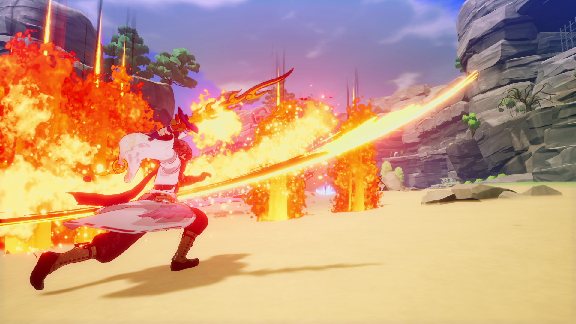 System walki jest dynamiczny, choć prosty. Bossowie wymagają chwili skupienia – trzeba nauczyć się wzorców ataków i unikać ciosów, ale – co wywołało u mnie szok i niedowierzanie (tak było, nie zmyślam) – nie jest to poziom wtajemniczenia znany z Soulslike’ów. Pojawiły się też nowe możliwości, jak np. trafienia krytyczne z łuku czy artefakty zwane Sacred Treasures. Te ostatnie pełnią funkcje bojowe i wspierające – oczyszczają ziemię, leczą sojuszników i aktywują inne specjalne efekty.