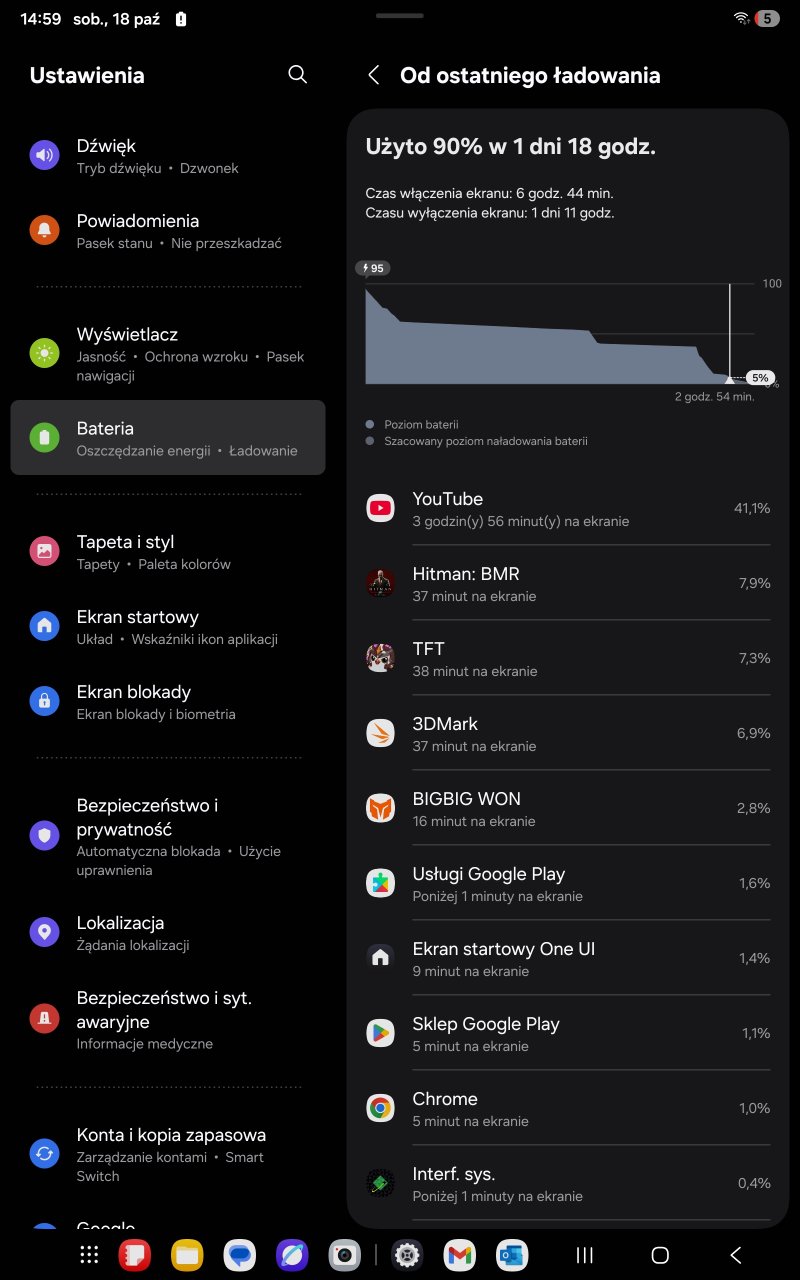 Oglądając filmy na YouTube oraz na Netflix w najwyższej dostępnej jakości i rozdzielczości, oraz grając w te produkcje jedna za drugą, SoT wyniósł od 6 godzin i 44 minut, do ponad 9 godzin na jednym ładowaniu. Rzecz jasna w międzyczasie włączony był mocno bateriożerny moduł Bluetooth, aktywne połączenie Wi-Fi oraz jasność adaptacyjna. Przy mniej intesnywnym użytkowaniu oznacza to, że bateria powinna wystarczyć przeciętnemu użytkownikowi na kilka dni.