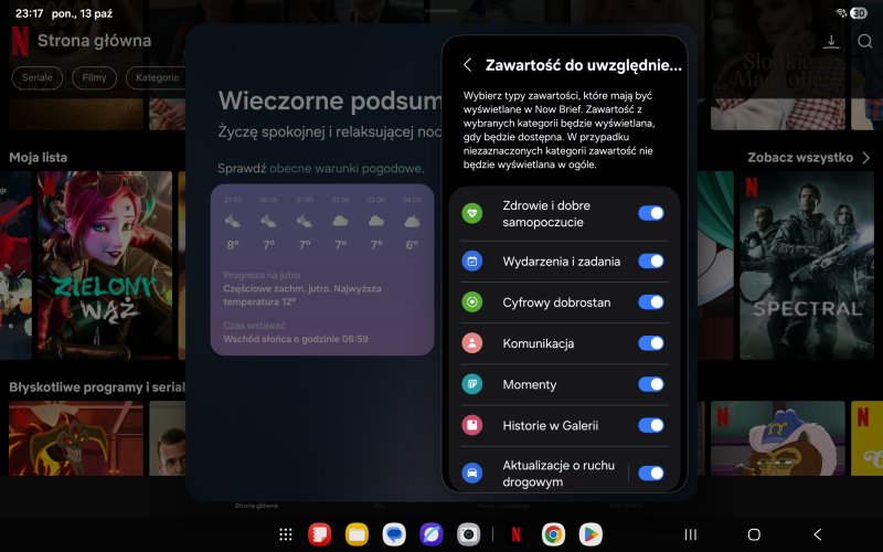 Interesujący bajerek, aczkolwiek nie wiem, czy w tablecie ma sens – to wygląda bardziej na funkcję dla smartfonów, której pełny potencjał pomoże rozwinąć smartwatch lub smart ring. Ostatecznie to właśnie nasze telefony mamy przy sobie niemalże non stop i wszystkie inteligentne zegarki również z nimi są połączone. Pewnie dlatego Now Brief na tablecie Samsung Galaxy Tab S11 nie pokazał mi niczego ciekawego, choć dostrzegam jego potencjalną użyteczność na sprzęcie innego typu.