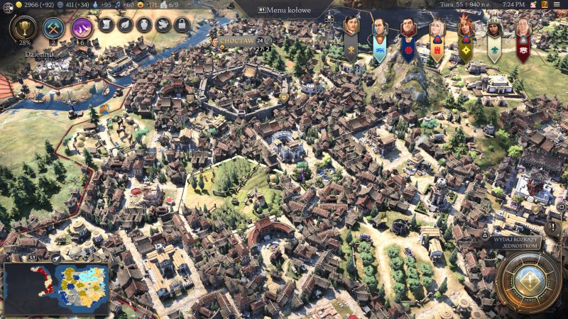 Inaczej działa system zasobów, które nie są już kluczowe do tworzenia jednostek. Nie ma potrzeby, aby w granicach państwa znajdowała się stadnina koni lub kopalnia żelaza, by wzmacniać armię. Dbanie o ilość posiadanych zasobów wciąż ma sens, ale aktualnie wynagrodzeniem za posiadane dobra są mniejsze bonusy, które można przypisać do każdego posiadanego miasta. Za pomocą koni możemy zwiększyć możliwości produkcyjne, a inny towar wartościowy zwiększy ilość dostępnej żywności itd. Oznacza to również, że handel pomiędzy innymi liderami nie jest już aż tak szczegółowy, a ogranicza się do ogólnych negocjacji, które dotyczą, np. liczby dostępnych szlaków handlowych, tworzenia wspólnych świąt oraz innych akcji przynoszących dodatkowe punkty na przestrzeni następnych kilkunastu rund. Taka zmiana może zostać potraktowana różnie. Osobiście czuję pewną ulgę, że nie muszę już błagać każdego dostępnego w grze lidera, aby użyczył mi trochę żelaza, ale nowy system wydaje się aż zbyt… banalny?