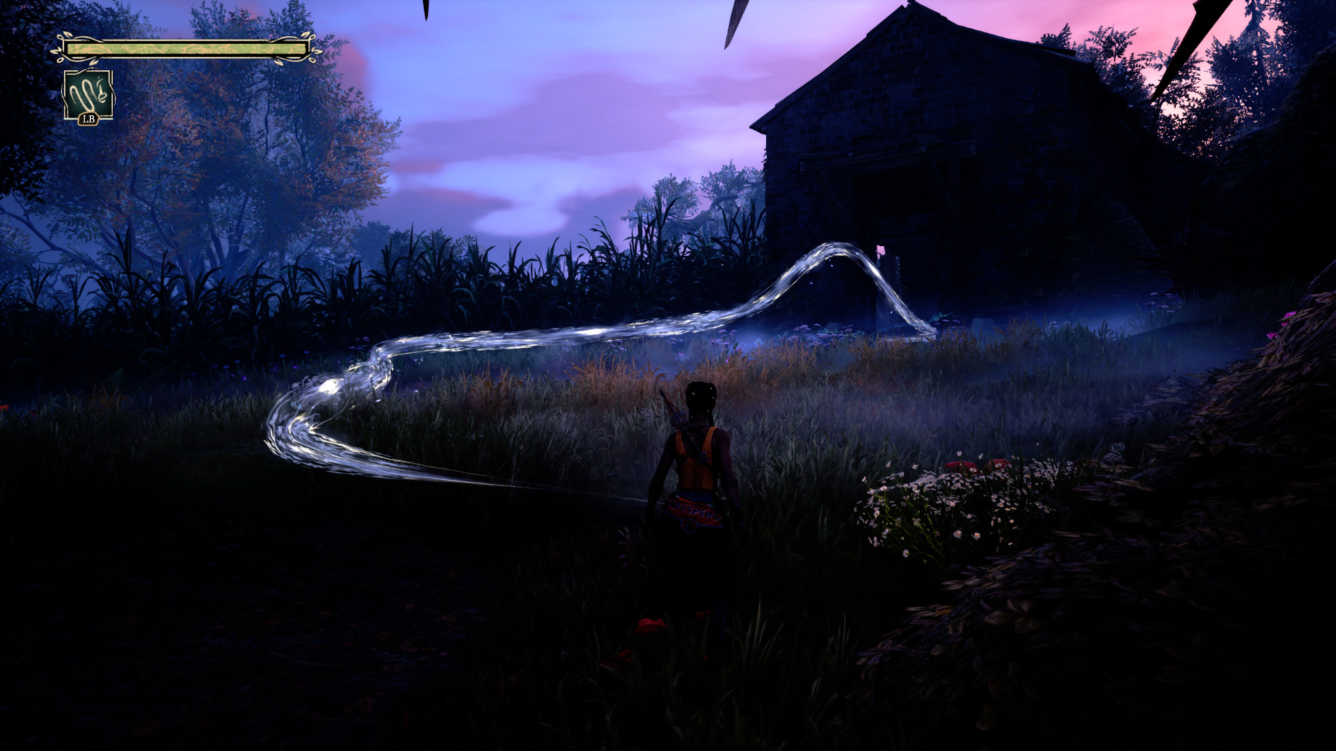 Compulsion Games określa swój nowy tytuł jako przygodowa gra akcji i jak najbardziej mogę się z tym zgodzić. South of Midnight to produkcja typowo liniowa a rozgrywka zawiera w sobie proste elementy platformowe, trochę walki oraz eksplorację niewielkich fragmentów otwartej przestrzeni, na której rozsiane są opcjonalne znajdźki. Twórcy zaoferowali graczom elementy znane z gier tego rodzaju, jak chociażby podwójny skok, dzięki któremu dostaniemy się w wyższe elementy otoczenia, czy szybowanie, które pomaga nam wydłużyć lot oraz uchronić zdrowie przy upadku.