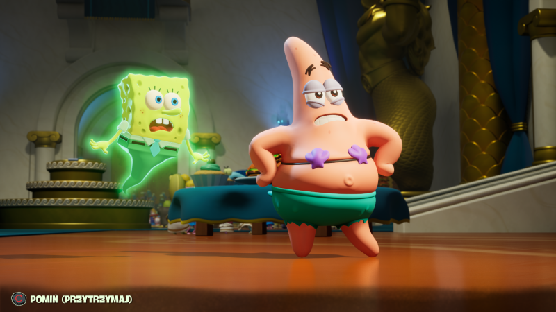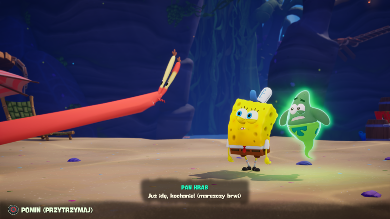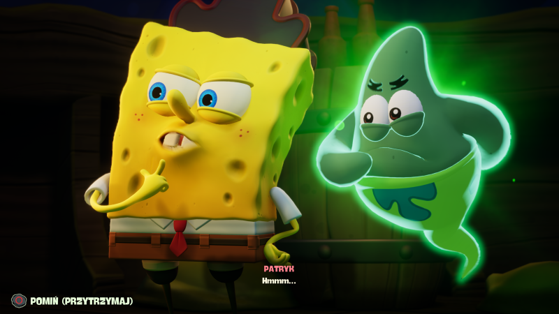Strona artystyczna gry i trójwymiarowe modele postaci nadal znajdą swoich przeciwników. Sam jestem raczej fanem klasycznej kreski, ale muszę przyznać, że Spongebob i reszta głównych postaci wyglądają naprawdę dobrze, szczególnie wskazując na mimikę, która często nawiązuje do wielu memicznych reakcji. Gorzej natomiast wypada otoczenie, które swoją estetyką wręcz krzyczy o generacji PlayStation 3 i Xboksa 360. Bardzo dziwnie wypada układ kamery podczas rozmów z innymi bohaterami. Obejmuje on wszystkich uczestników rozmowy i umieszczony jest bezpośrednio przed nimi, co daje wrażenie trójwymiarowych modeli osadzonych na dwuwymiarowym tle.