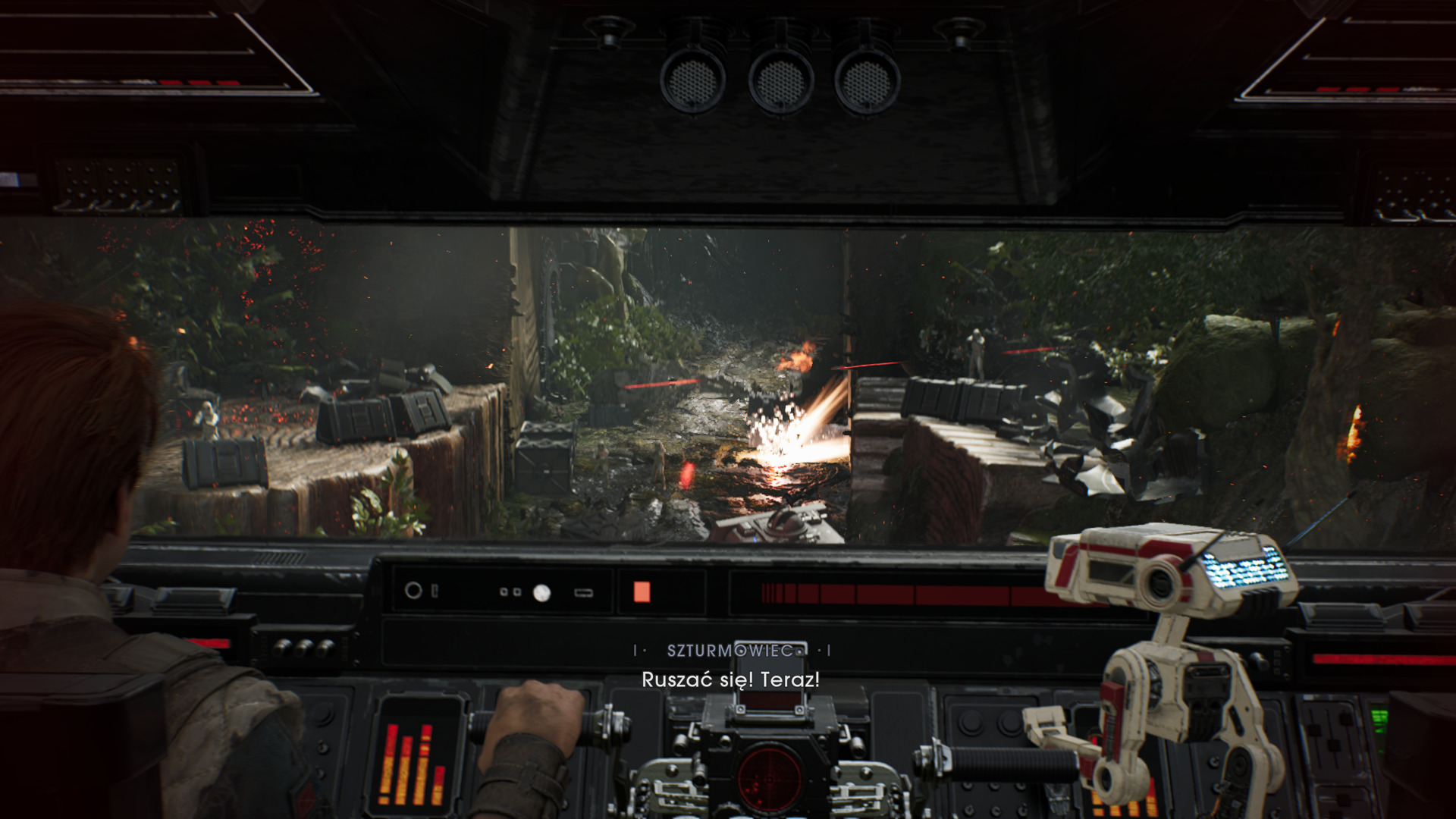 Na szczęście same potyczki, są w Upadłym Zakonie mocno „skillowe” i satysfakcjonujące. Używając ikonicznego dla uniwersum miecza świetlnego, jesteśmy w stanie przebijać się przez szeregi najsłabszych wrogów z umiarkowanym trudem, ale wykorzystywać jego prawdziwą moc nauczymy się dopiero z czasem. Kluczowym elementem jest tu blok, który zasłania większość typowych ataków oponentów, a jeśli wciśniemy go w odpowiednik momencie, możemy wykonać widowiskowy kontratak nierzadko zakończony śmiercią oponenta, albo nawet odbić strzał z blastera.