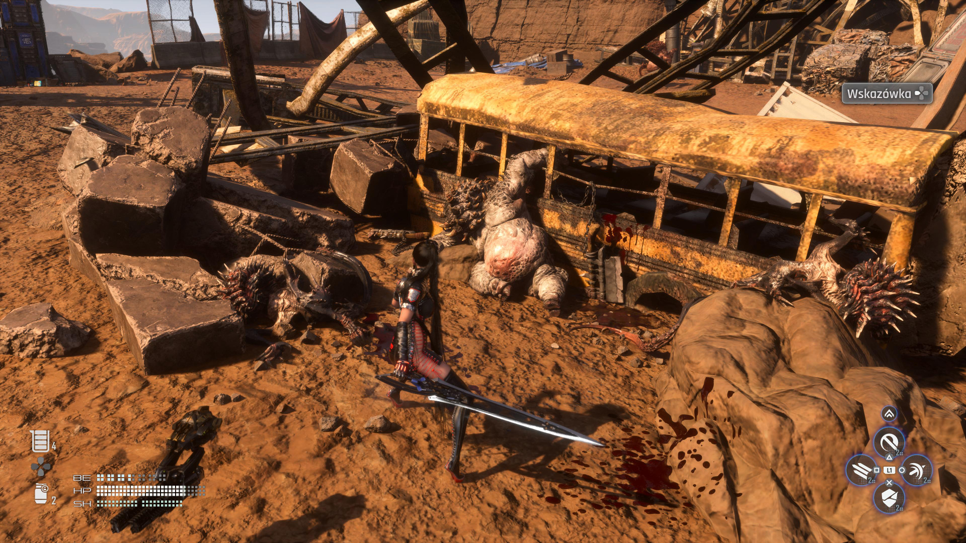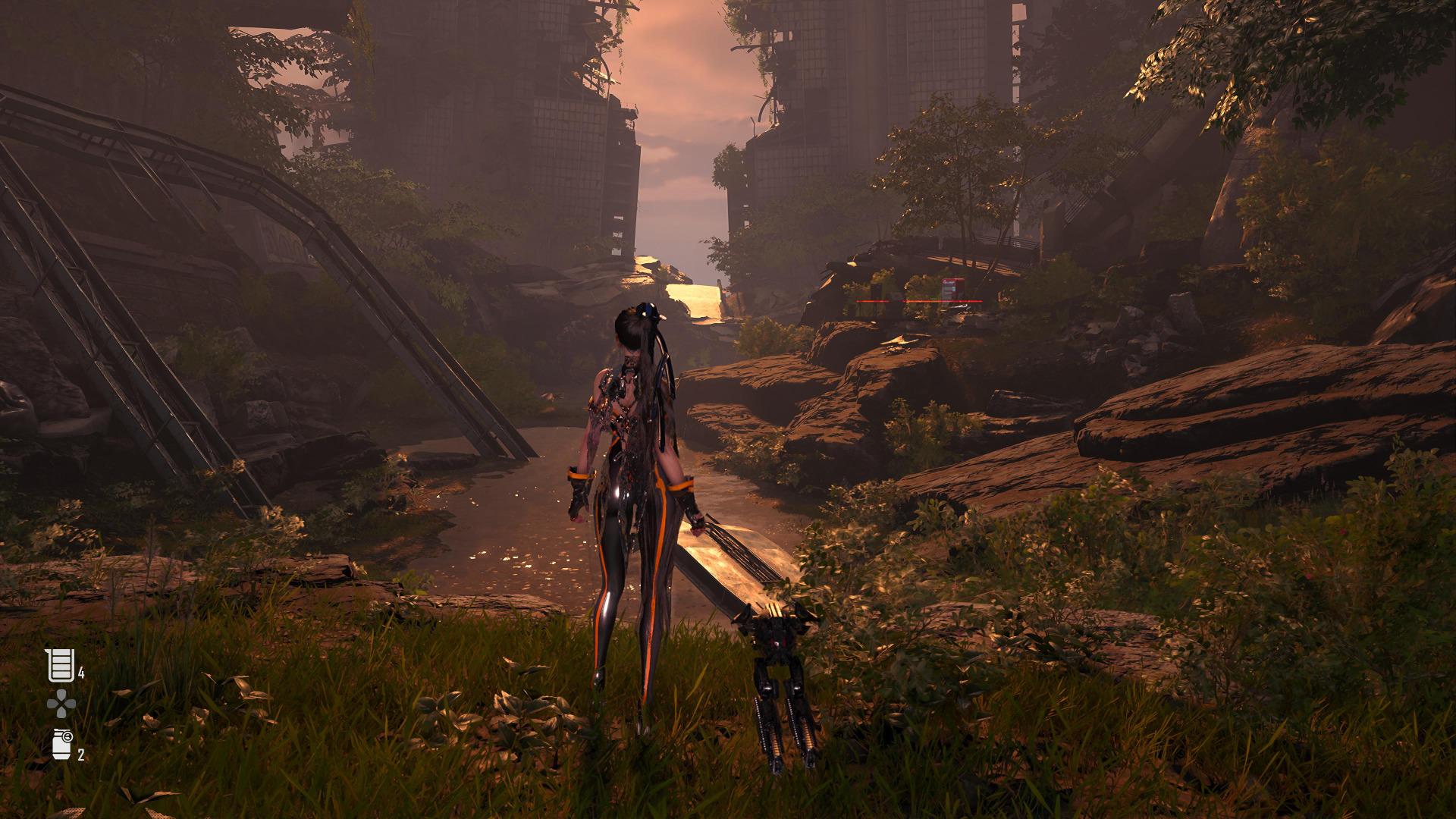 Lokacje w Stellar Blade to otwarte mapy, do których możemy podróżować statkiem z ocalałego miasta ludzkości, które jest tutaj naszym hubem. Miejsca naszych podróży to nieduże otwarte przestrzenie, w których znajdują się misje poboczne, aktywności, a także drobne tajemnice do odkrycia. Moim zdaniem, twórcy bardzo dobrze zrobili, że nie wsadzili nas do jednej otwartej lokacji zapełnionej znacznikami, tylko podzielili je na mniejsze. Dzięki takiemu rozwiązaniu nie miałem poczucia zagubienia na żadnej mapie i nie zdążyła mnie zbyt szybko znudzić, chociaż nie ma się co oszukiwać, aktywności i misje poboczne nie są najmocniejszym elementem tej gry. Gra oferuje również system szybkiej podróży, który aktywujemy za pomocą odwiedzonych budek telefonicznych i obozów, w których możemy zapisywać stan gry. Jak to w soulslikach bywa, po każdym zapisie lub śmierci, przeciwnicy na mapie odnawiają się i musimy z nimi walczyć ponownie. Warto zauważyć, że śmierć w tej grze, tak naprawdę nie ma dla nas żadnego negatywnego skutku, ponieważ nic nie tracimy. Chciałbym jeszcze pochwalić twórców za mądre rozmieszczenie punktów zapisu, ponieważ zawsze przed jakimś ważniejszym wydarzeniem, znajdziemy obóz, dzięki któremu nawet po śmierci nie będziemy musieli zasuwać przez pół mapy.