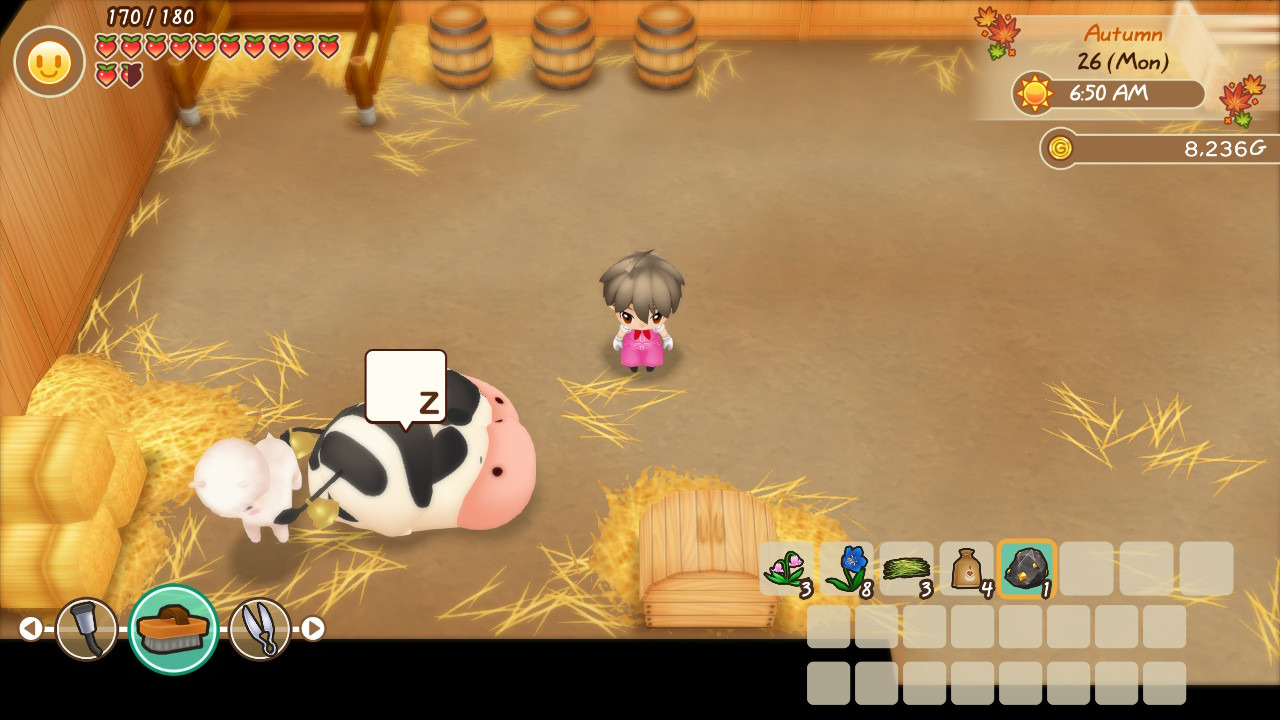 Po drugie, nie trzeba już budować zagród dla zwierząt i z trudem je tam przepychać. Twórcy postawili przed oborą i kurnikiem dzwonek, dzięki któremu zwierzęta same wychodzą na dwór i same z niego wracają o 20:00 i nie musimy się tym martwić. W oryginale takie wyprowadzanie mogło zająć cały dzień i jeśli miało kolejnego dnia padać, to mogło nie udać się znów wprowadzić zwierząt do ich domów.