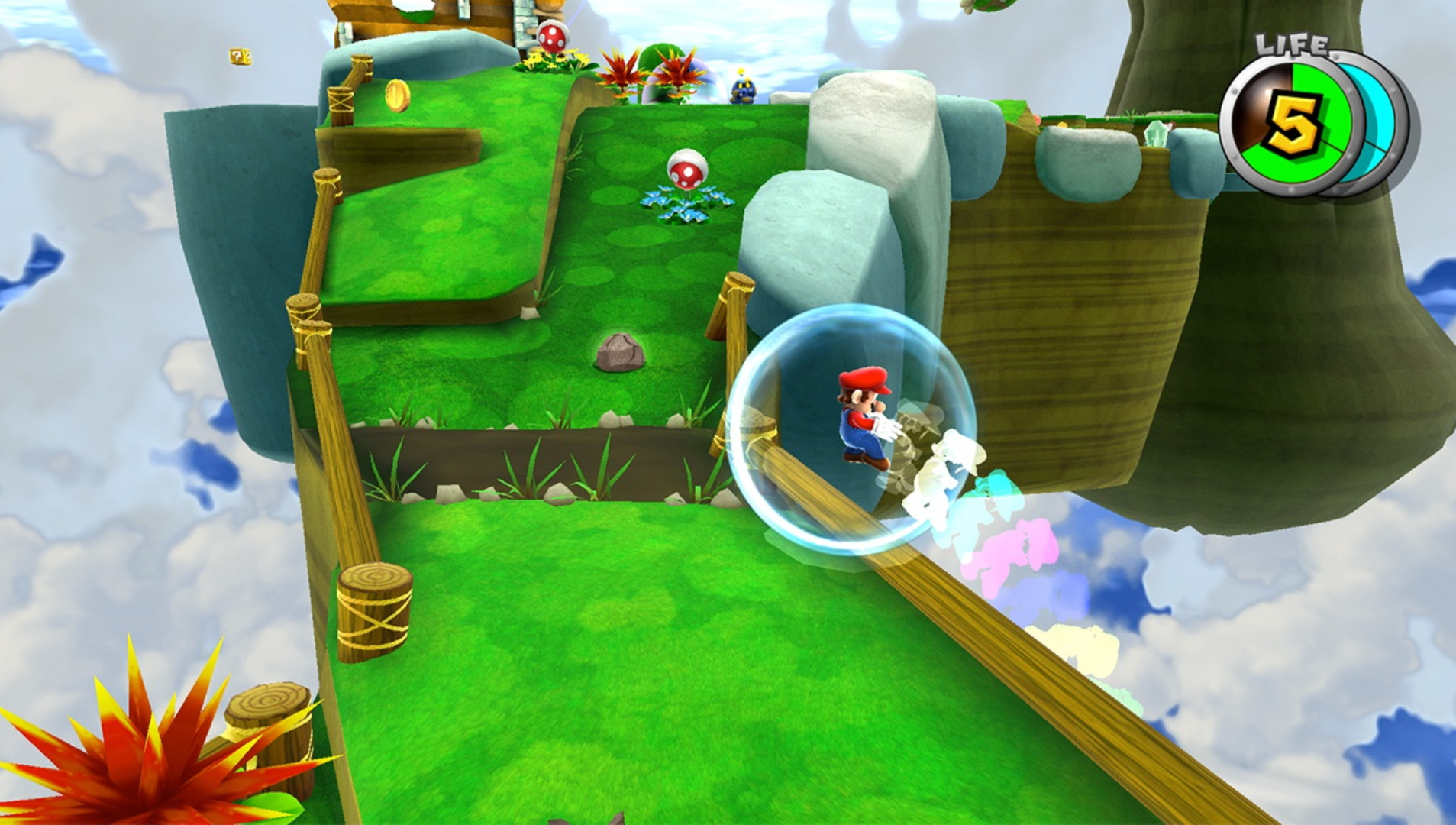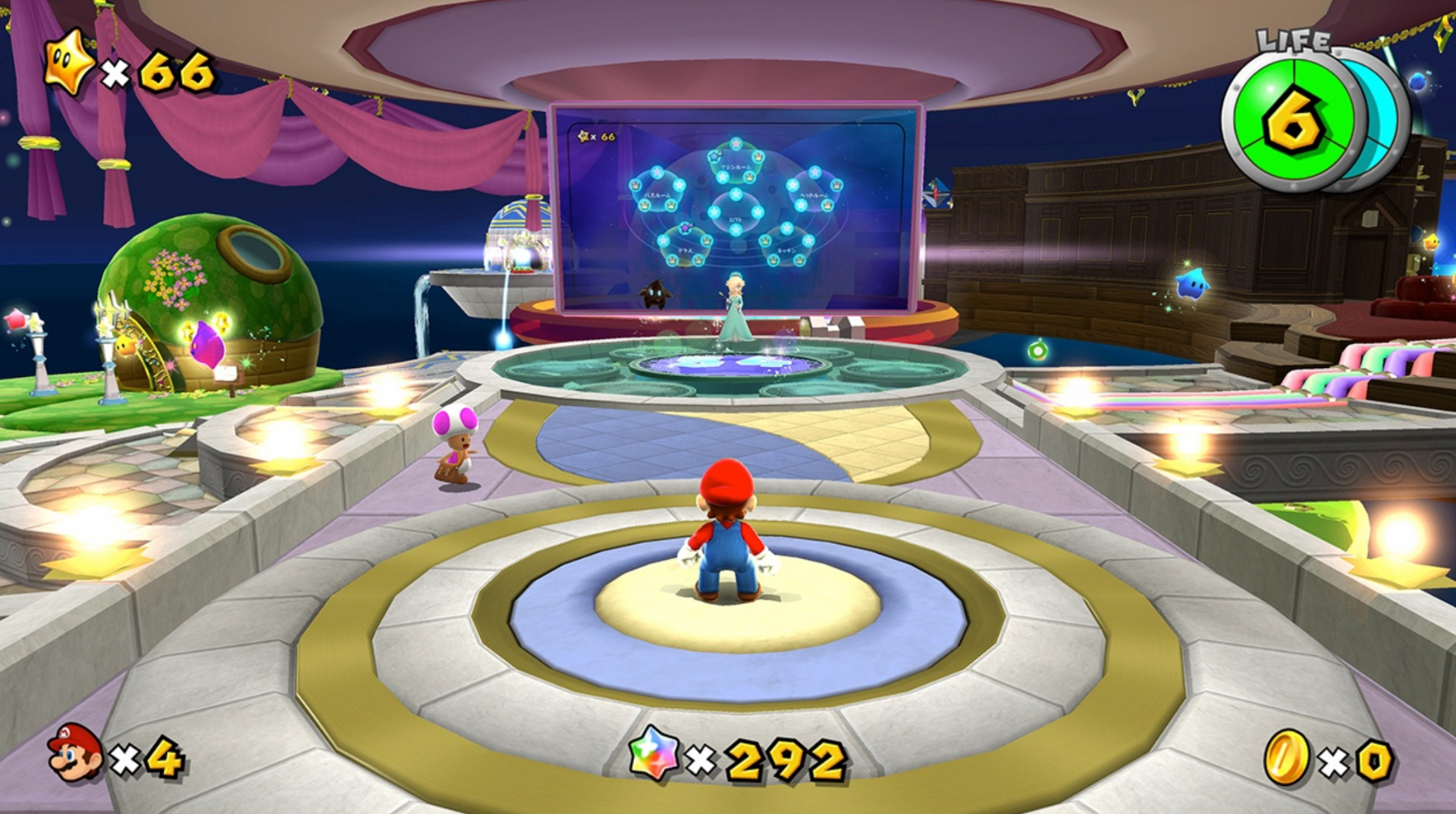 Z kolei Super Mario Galaxy 2 to czysta, skondensowana do granic możliwości esencja rozgrywki. Nintendo po trzech latach od debiutu "jedynki" doszło do wniosku, że fabularne tło jest zbędne, a rozbudowany hub tylko spowalnia akcję. Wyrzucili więc jedno i drugie, zastępując je prostą mapą poziomów i statkiem kosmicznym w kształcie głowy Mario. Całą zaoszczędzoną energię twórczą wlano w projektowanie poziomów.
