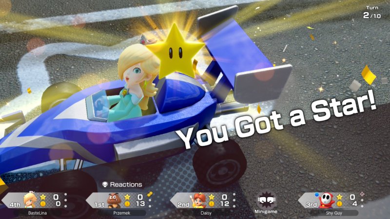 Odblokowanie każdego osiągnięcia przesuwa nas do przodu w czymś podobnym do przepustki bitewnej, gdzie każdy poziom oferuje dostęp do nowych emotek, naklejek czy muzyki wykupowanej za grową walutę. Jest to wyłącznie dodatek dla najbardziej zaangażowanych, a w grze nie ma żadnych ukrytych mikropłatności oraz mechanik pay2win. Od początku mamy dostęp do wszystkich bohaterów, a za postępem w rozgrywce zablokowane są jedynie dodatkowe plansze w trybie Mario Party, odblokowanie ich to natomiast kwestia zaledwie kilku sesji, a nie wielu dolarów…