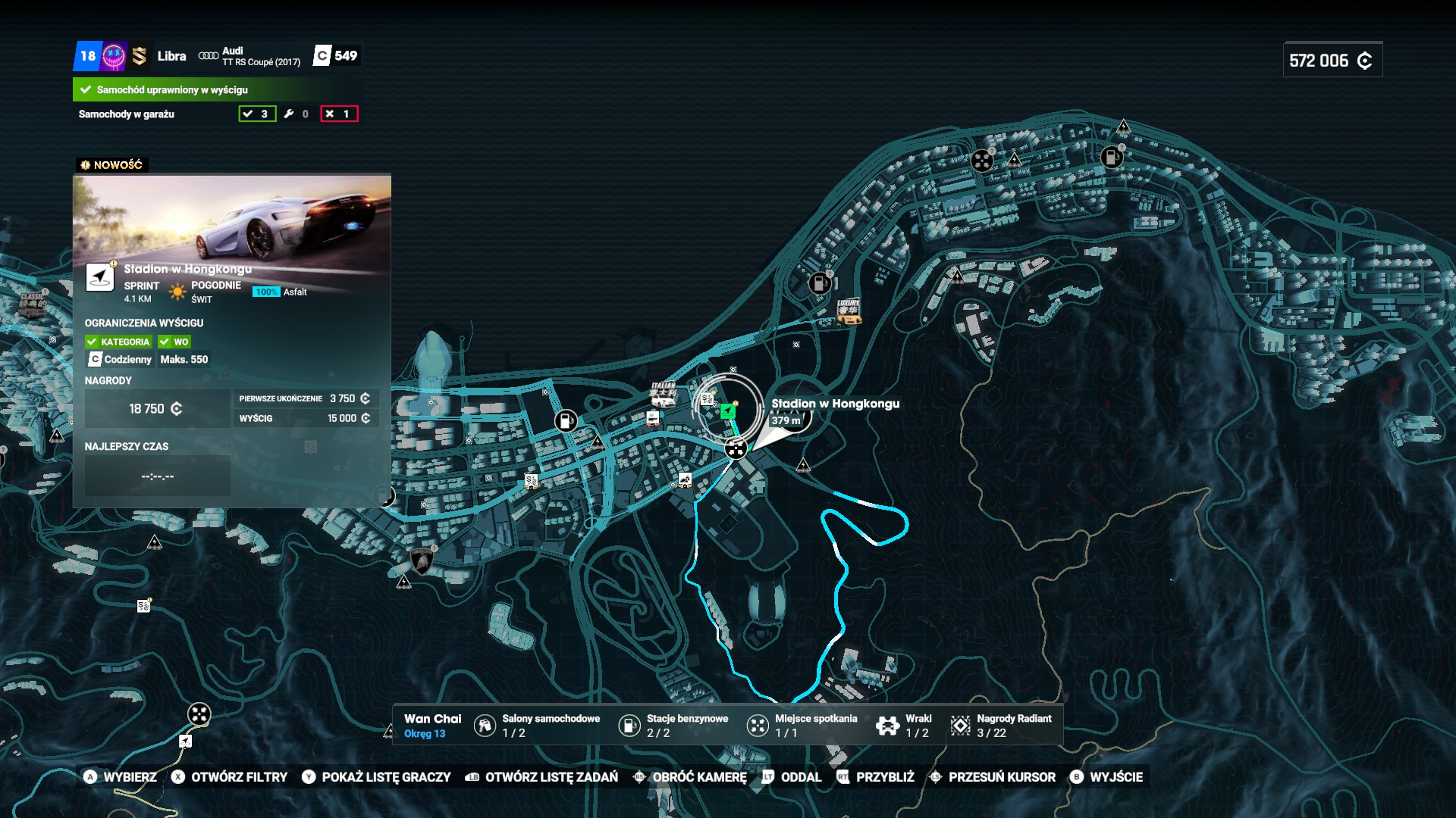 Przejdźmy w końcu do mięska. Wyścigi. Na wyspie rozsiana jest ich cała masa, ale nie wszystkie są dla nas, od razu dostępne. Wraz ze wzrostem naszej reputacji w kolejnych regionach Hongkongu odblokowują się kolejne okazje do udowodnienia innym, kto jest najszybszym kogutem w tym kurniku. W zakręty wchodzić będziemy zarówno podczas klasycznych wyścigów z kilkoma oponentami, jak i podczas prób czasowych czy pojedynków jeden na jednego.