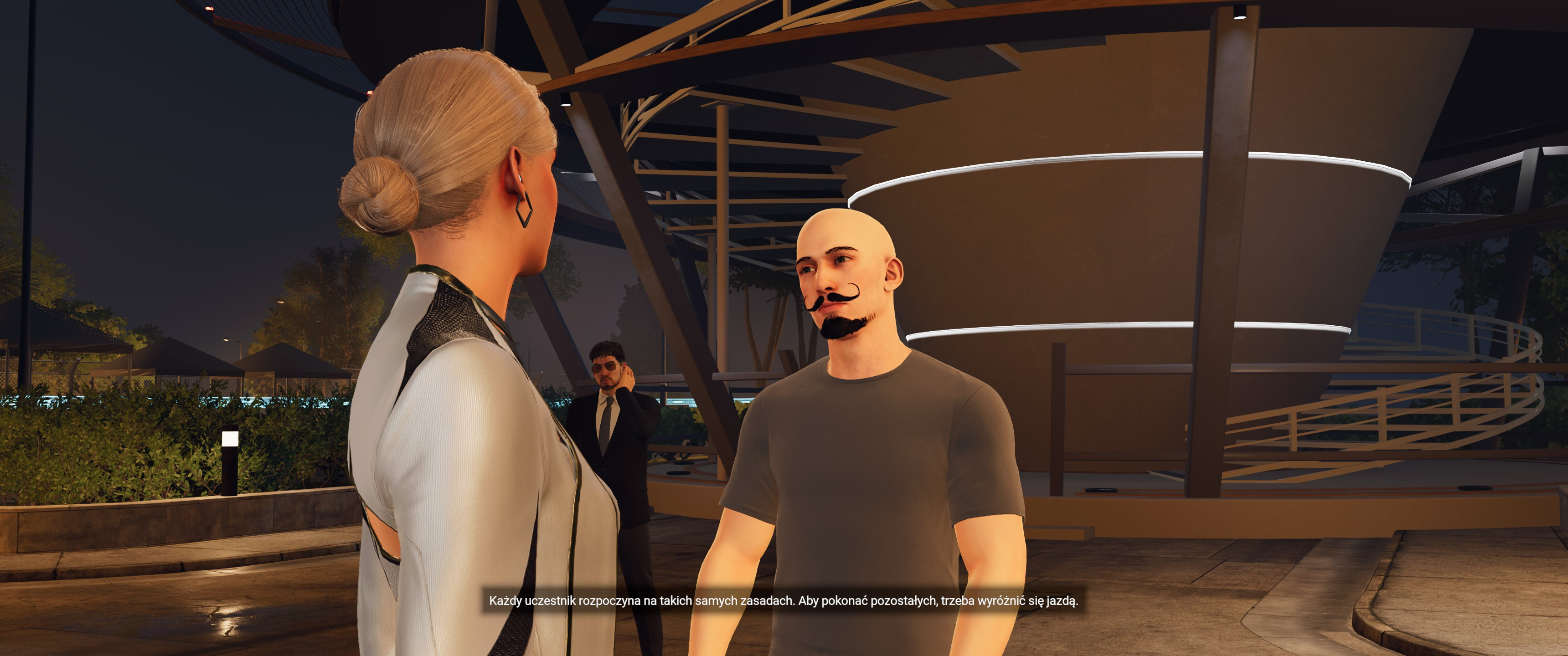 Test Drive Unlimited Solar Crown to kolejna gra wyścigowa w której, nie uwierzycie, bierzemy udział w festiwalu. Jest on rzecz jasna niezwykle prestiżowy i przeznaczony tylko dla najlepszych kierowców. Od pierwszych minut bombardowani jesteśmy tekstami o tym, jak wielkie są nasze umiejętności, oraz że widać w nas potencjał, by dostać się na sam szczyt festiwalowej drabinki. Cały ten zalew informacji jest niezwykle nudny i po prostu trudny do przełknięcia. Nadal pamiętam jak wykręcało mnie z żenady, gdy słuchałem „luzackich” tekstów przy okazji festiwalu z Forza Horizon 5. Tutaj mam wrażenie, że jest jeszcze gorzej. Postacie, które spotykamy, silą się na profesjonalizm i uderzają w bardziej poważne klimaty, ale serwowane jest to, co najmniej równie okropnie, jak w wyścigach od Playground Games.