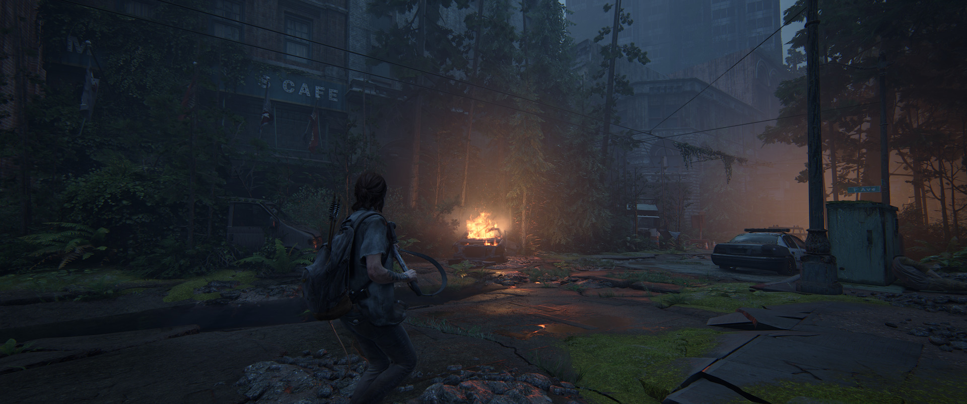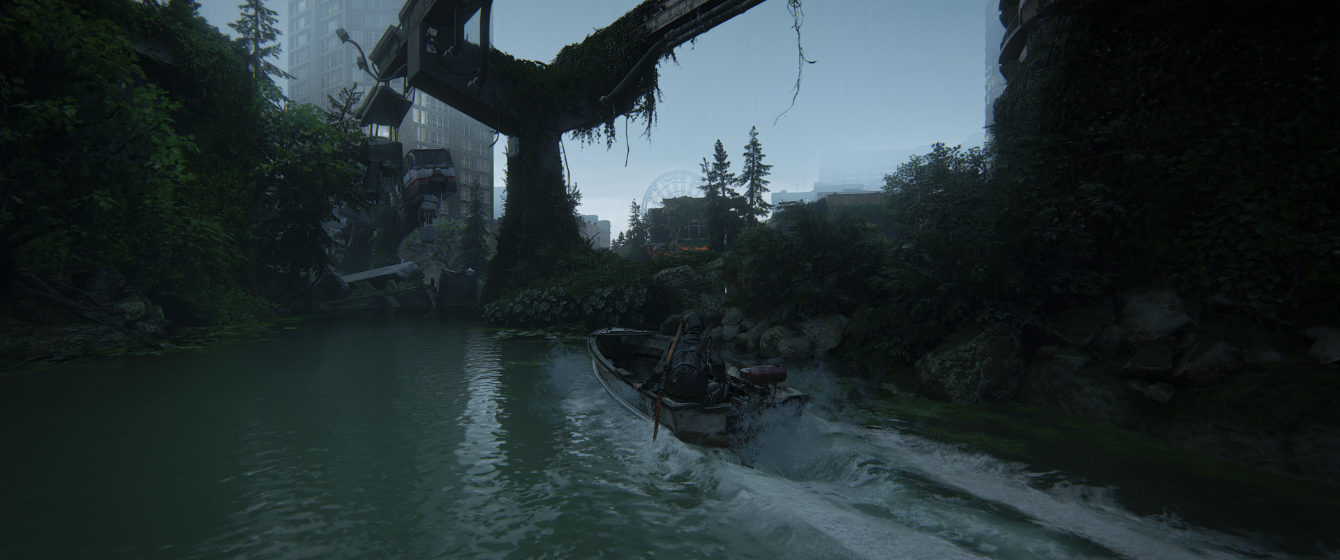 The Last of Us™ Part II Remastered pod względem graficznym jest niewątpliwie szczytowym osiągnięciem ery PlayStation 4. Jest naprawdę bardzo ładnie, ale nie niesamowicie. Grając przemierzymy wiele terenów, które budzą uznanie poziomem dopracowania, ale ani razu nie zdarzyło mi się pomyśleć „wow, niesamowity widok!”. Bardzo przypadły mi do gustu zarówno miejskie zabudowania, które zaczęła przekształcać niekontrolowana przez człowieka natura, zalewając wszystko gęstą zielenią oraz lasy, które możemy podziwiać zarówno zimą, jak i w nieco cieplejszej aurze.