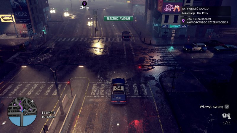 Z ręką na sercu muszę przyznać, że produkcja Fallen Tree Games pod względem graficznym potrafi spowodować opad szczęki. Oświetlenie w połączeniu z mokrą nawierzchnią daje nie raz fotorealistyczne efekty (w szczególności w nocy) i przypomina, że mamy do czynienia z grą na aktualną generację sprzętu. Szkoda jednak, że to wrażenie jest nieco zaburzone przez fakt, że The Precinct na PlayStation 5 Pro działa jedynie w 30 klatkach na sekundę, z okazjonalnymi przycięciami. Podejrzewam, że twórcom zależało na zachowaniu obecnych efektów wizualnych (nawet kosztem wydajności), aby zachować odpowiedni klimat produkcji, który przy cięciach graficznych mógłby ucierpieć.
