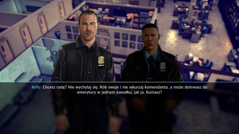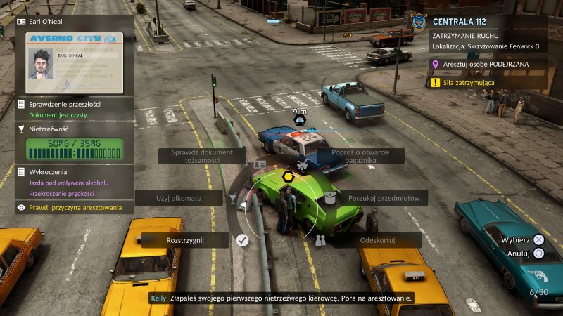 Przygodę rozpoczynamy jako Nick Cordell Junior, świeżo upieczony absolwent akademii policyjnej w Averno City. Trafiamy pod skrzydła doświadczonego, choć niezbyt ambitnego policjanta przed emeryturą i po odprawie ruszamy w teren zakosztować walki z przestępczością, mandatami za parkowanie oraz hot dogów (bo czemu by nie?). Gra stopniowo wprowadza nas w swoje mechaniki, zaczynając od drobnych wykroczeń i wydarzeń małej skali. Bardzo byłem ciekaw, jakie dostaniemy możliwości jako funkcjonariusz, mając w pamięci świetne rodzime Beat Cop (które mimo swojej mikro skali, było wybitne pod względem klimatu i opowiadanej historii).