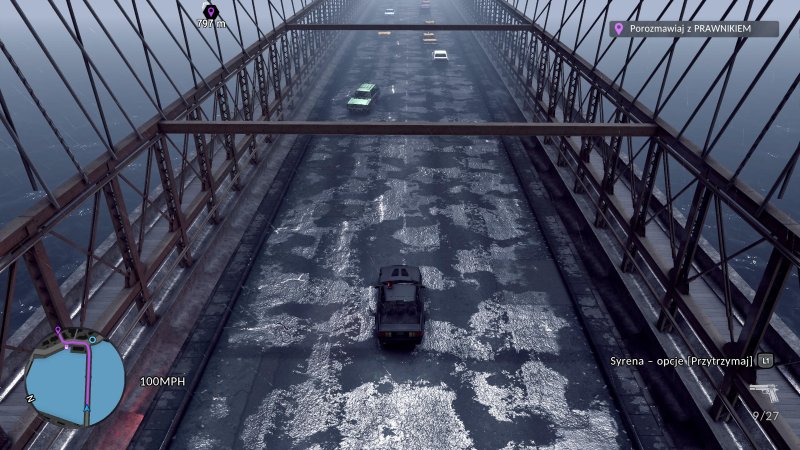 Poza działaniami na własnych nogach oczywiście nie mogło zabraknąć pościgów policyjnych, w których możemy wziąć udział. Jeżeli będziemy utrzymywać za ściganym odpowiedni dystans, wzrośnie nam pasek działań, który umożliwi wezwanie dodatkowego wsparcia w formie kolejnych radiowozów, rozstawienia blokady oraz kolczatek, a nawet wezwania śmigłowca. Dzięki temu bardzo łatwo tutaj o wręcz kinowe pościgi, które potrafią być widowiskowe i satysfakcjonujące. A skoro mowa o kinowym doświadczeniu, to nie mogło zabraknąć opcji przejęcia pojazdu obywatela w razie potrzeby.