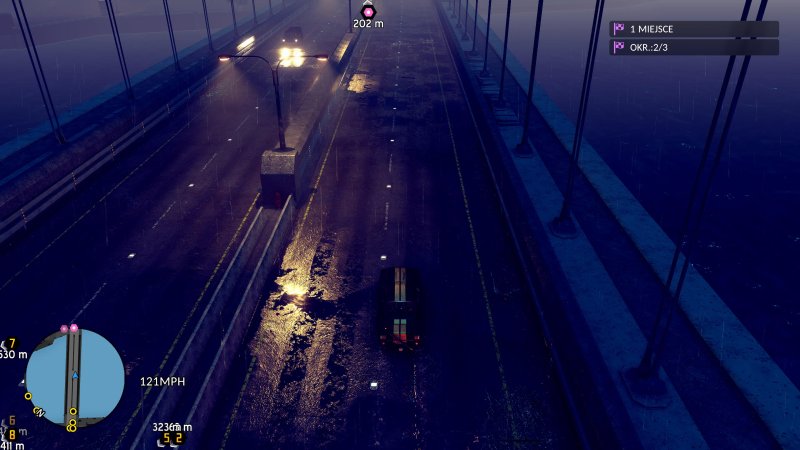 Drobny obiekt wpadający pod auto podczas przejazdu może sprawić, że te zawiśnie, odskoczy w nieprzewidywalnym kierunku lub nawet zniknie pod teksturami. Najbardziej przerażające pod tym względem okazały się ruchome bramy oraz budki telefoniczne. Ich bezpośrednie uderzenie samochodem to niemal 50% ryzyko, że samochód wybuchnie lub zostanie wciągnięty przez tekstury ulicy. W trakcie wyścigów, gdzie ścinanie zakrętów jest kluczowe, ta kwestia stała się niewiarygodnie frustrująca, przykuwając mnie do jednego wyzwania na prawie godzinę. Nie z powodu wymagającej SI przeciwników, ale właśnie nieprzewidywalnego środowiska gry.