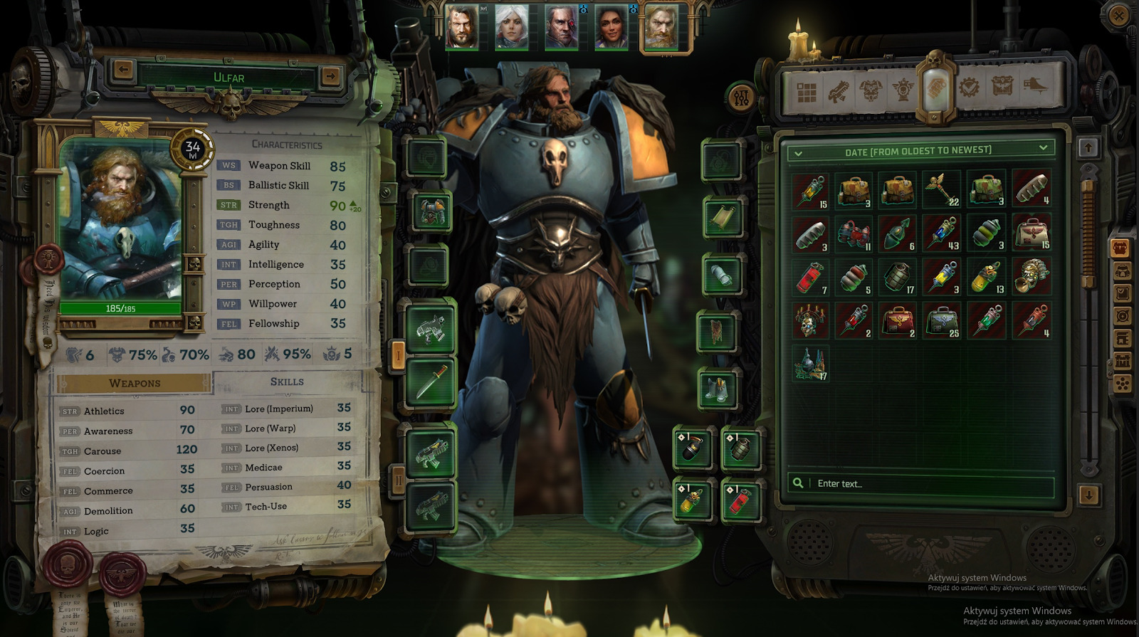 Różnorodność towarzyszy też jest na ogromny plus. Mamy tutaj postacie z tak znany frakcji tego uniwersum jak siostrę Argentę z Adepta Sororitas, Inkwizytora Hendrixa czy nawet Ulfara, Astartes z zakonu Space Wolves! Każda z tych postaci ma własną historię i własne problemy, z którymi pomożemy im sobie poradzić. Zwykle nagrodą za ukończenie całej historii kompana to nowy pancerz dla nich. Niestety, nie zawsze są to użyteczne przedmioty, wszystko zależy od buildu i tego, jaką rolę w naszym oddziale pełnią, więc finalnie niektóre z nagród mogą nas rozczarować.