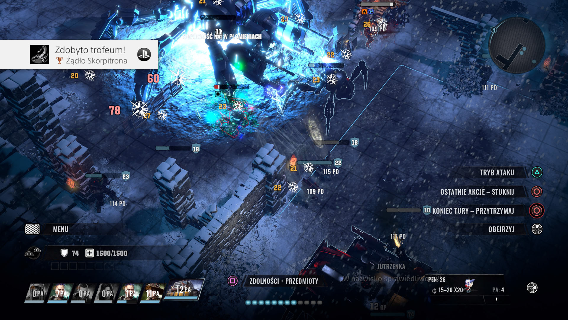 Pod względem układu sterowania twórcy musieli się sporo nagimnastykować, nie istnieje bowiem żaden konsolowy standard jak w przypadku gier FPS, w jaki sposób należałoby pomieścić poszczególne akcje. Efekt jest całkiem przystępny, choć ciężko mówić tu o intuicyjności. Początkowo spore problemy będziemy mieć z wydawaniem ostatnich punktów akcji na odpowiednie akcje obrony, gdyż zarówno pominięcie tur wszystkich postaci, jak i rozkaz ich zachowania umieszczono pod jednym klawiszem. Zbyt długie przytrzymanie kółka skończy się więc ruchem przeciwnika, podczas gdy my ruszyliśmy zaledwie jedną postacią. Niejednokrotnie udało mi się też zgubić w niezbyt ergonomicznie umiejscowionych akcjach na krzyżaku, przez co nie mogłem szybko wrócić do walki. Tymczasem przycisk R2, który mógłby posłużyć do uproszczenia sterowania, pozostał niezagospodarowany. Twórcy nie pokusili się też o wykorzystanie touchpada, którego to można, jak pokazał, chociażby Wiedźmin, sprytnie użyć do znacznej poprawy ergonomii przekształcając go w kilka dodatkowych przycisków.
