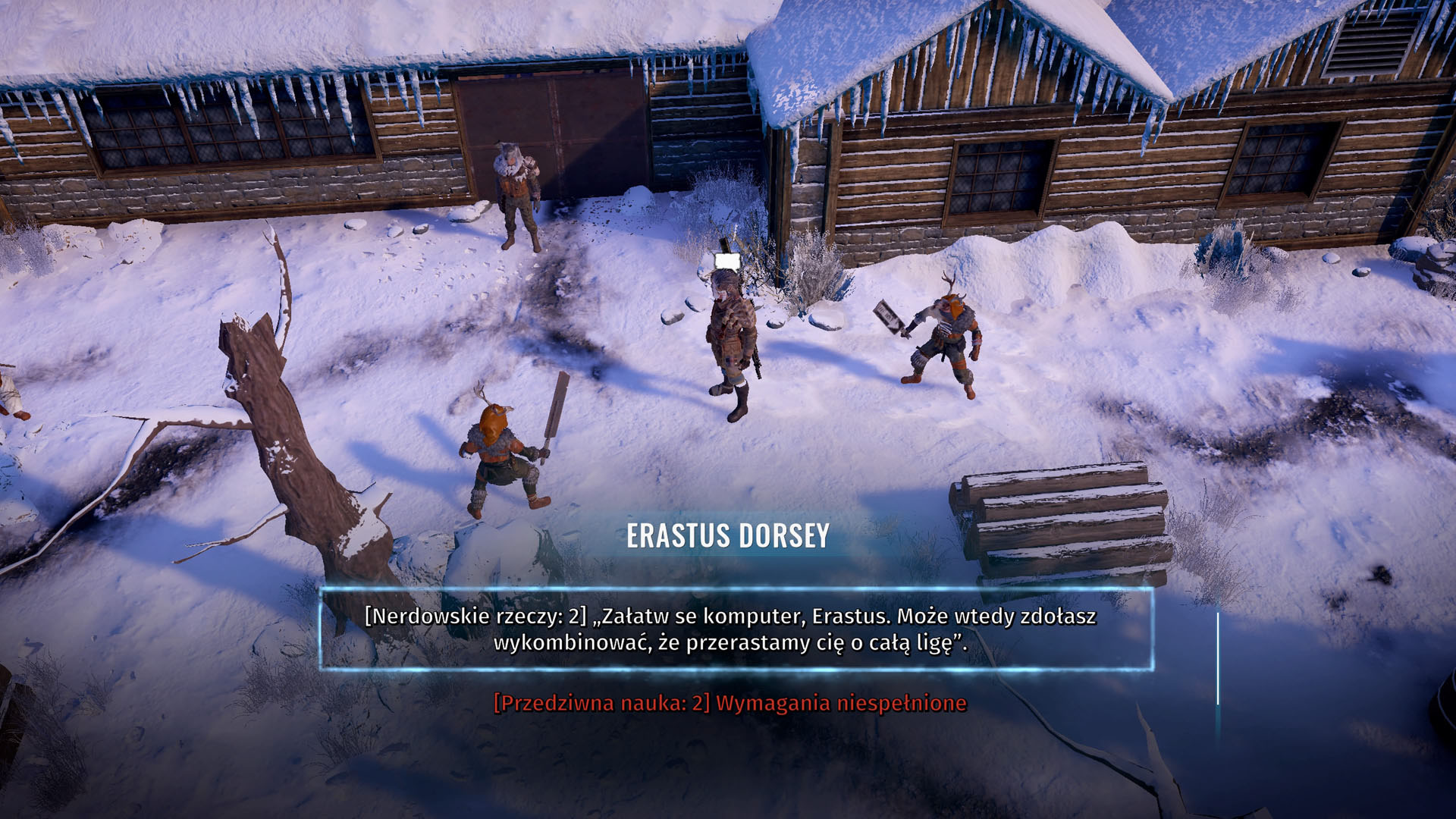 Naturalnie oprócz samej walki w grze wykonujemy również zadania i eksplorujemy, bo jak na postapo przystało, jednym z najważniejszych aspektów gry jest eksploracja. Ta składa się z dwóch części: pojazdem na mapie głównej, a także tej pieszej na poszczególnych lokacjach. W przypadku tej pierwszej nie mamy do czynienia jedynie z prostym systemem point & click, ale rzeczywiście prowadzimy naszą opancerzoną maszynę po pustkowiach. Przemierzając je warto nie tylko przeć do ustalonego na mapie celu, ale także zatrzymywać się przy różnorakich sekretach. Przykryte śnieżnym puchem Kolorado samo w sobie wydaje się intrygujące, a jeśli do tego dodamy znakomicie zrealizowany aspekt eksploracyjny, to zdamy sobie sprawę, że mapę będziemy chcieli odkrywać nie tylko dla samych znajdziek, ale i chęci odkrycia kłębiących się nań tajemnic. Tych jest całkiem sporo, a jeśli do tego natrafimy na pola promieniowania, które sprawią, że do niektórych, pełnych w prezenty lokacji dostaniemy się dopiero po ulepszeniu pojazdu, to nasze zaciekawienie rośnie.