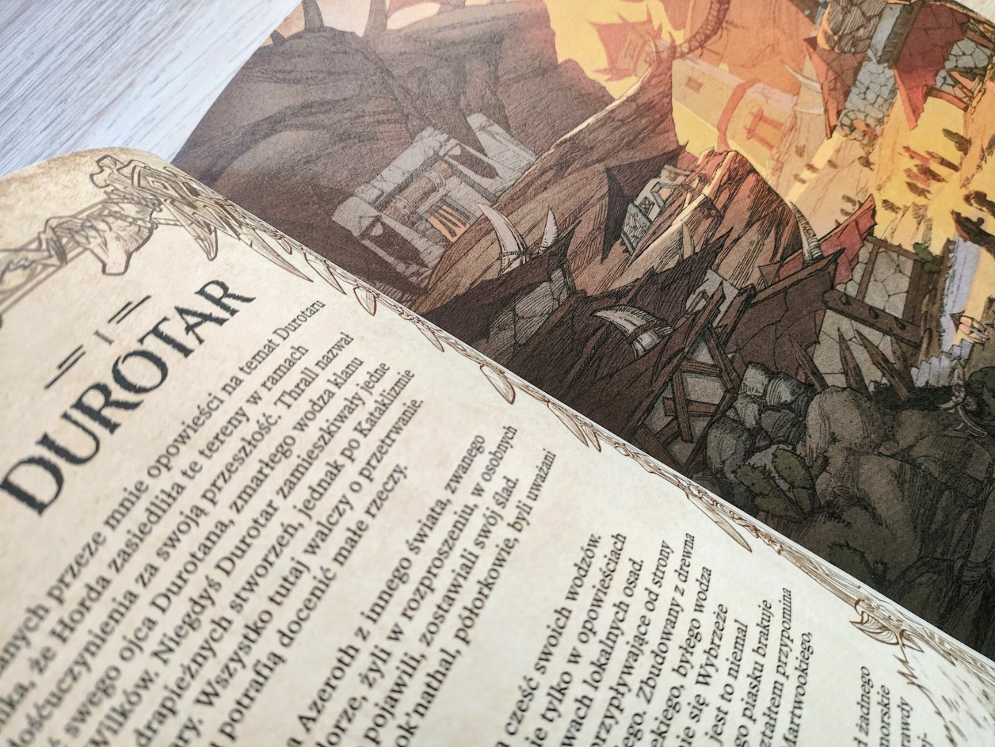 Twarda oprawa książki jest równie porządna, co strony, które znajdziemy w środku. Sprawiają one wrażenie, jakbyśmy obcowali z czymś bardziej w stylu pergaminu niż pierwszej lepszej kartki. Znakomicie pomaga to w mocniejszym zagłębieniu się w treść, jaką przygotował Sean Copeland. Przez niektórych nazywany jest on „historykiem” odpowiedzialnym za rozwój fabularny w grach i książkach zamieci, a przez innych „nadwornym kronikarzem Blizzarda”. Brzmi to jak doskonała reklama dla tekstu, który skrywa w sobie przewodnik. Za polskie tłumaczenie pozycji odpowiedzialny jest Piotr Czarnota. Sprawdźmy zatem, jak udało się połączenie zdolności tych dwóch panów.