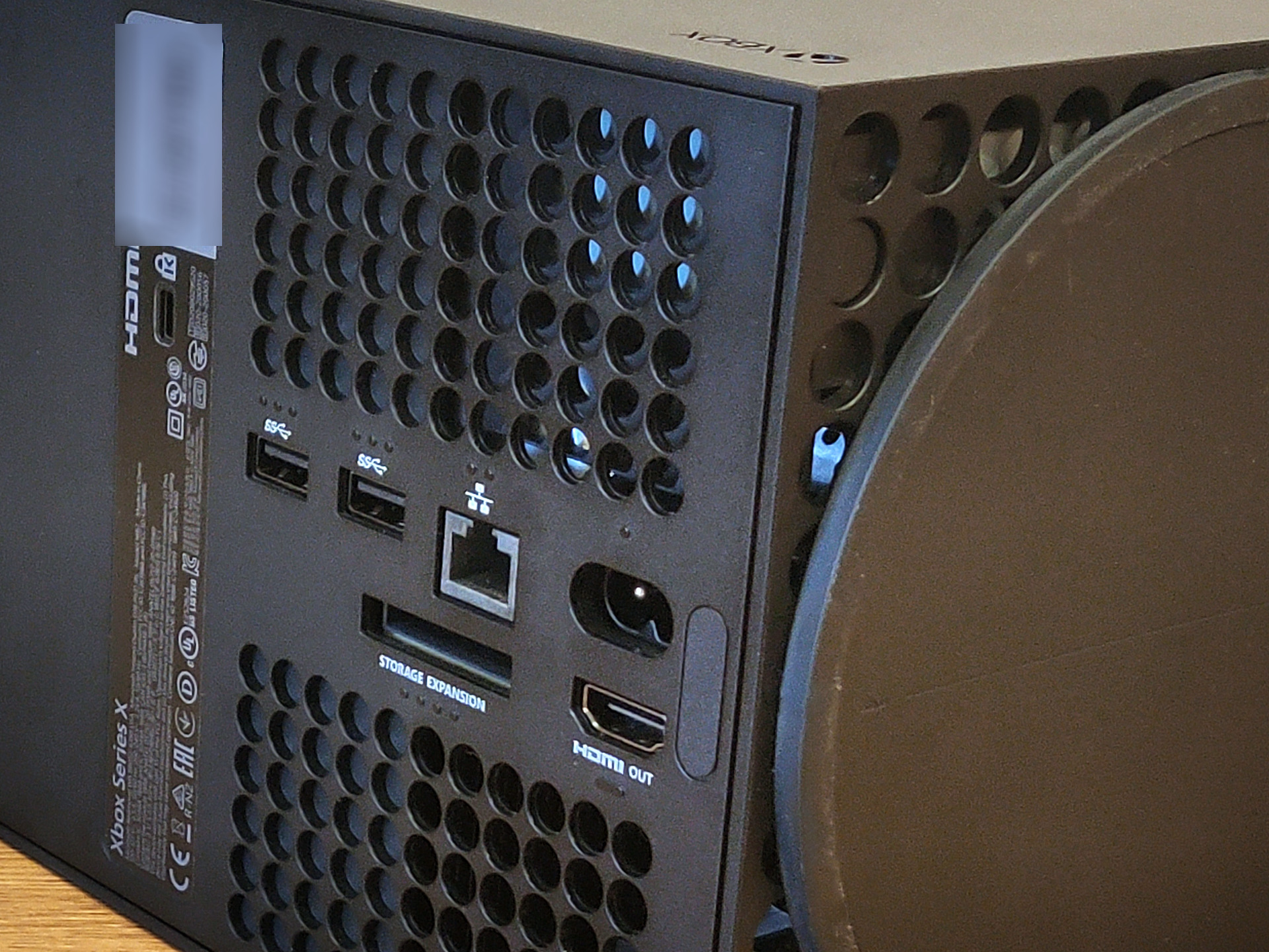 Tył urządzenia to oczywiście gros portów: wejście zasilania, port Ethernet do podłączenia internetu przewodowo, dwa porty USB 3.1 typu A, wyjście HDMI oraz dedykowany konsoli slot Storage Expansion umożliwiający wykorzystanie dodatkowej przestrzeni dyskowej.