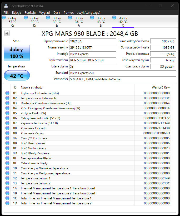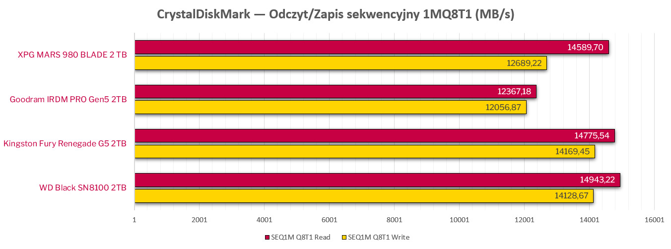 | XPG MARS 980 BLADE 2 TB | 14 000 MB/s | 13 000 MB/s | ~ 850 zł |